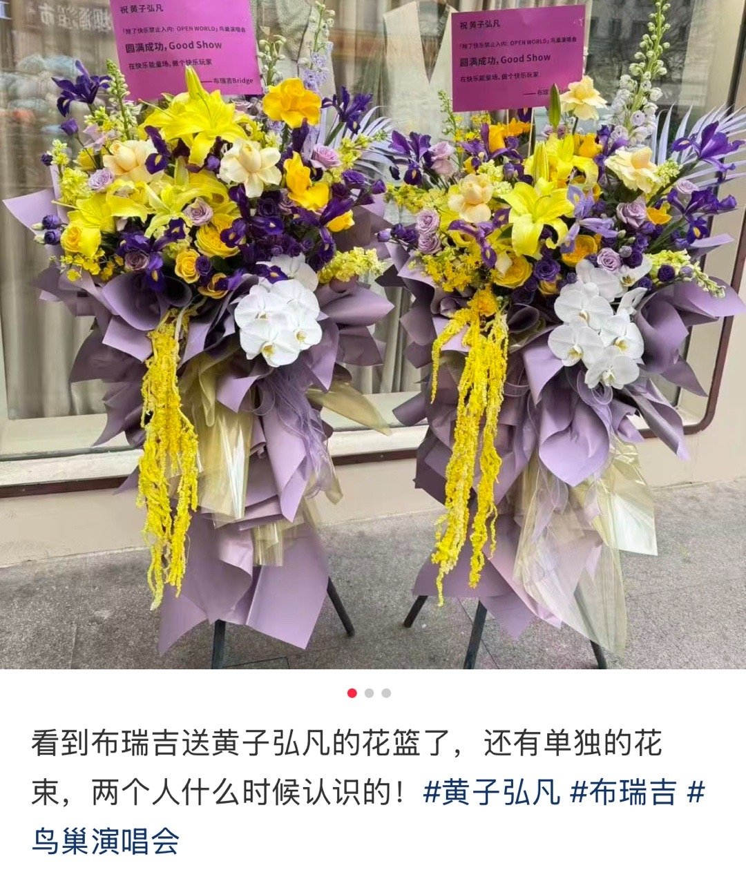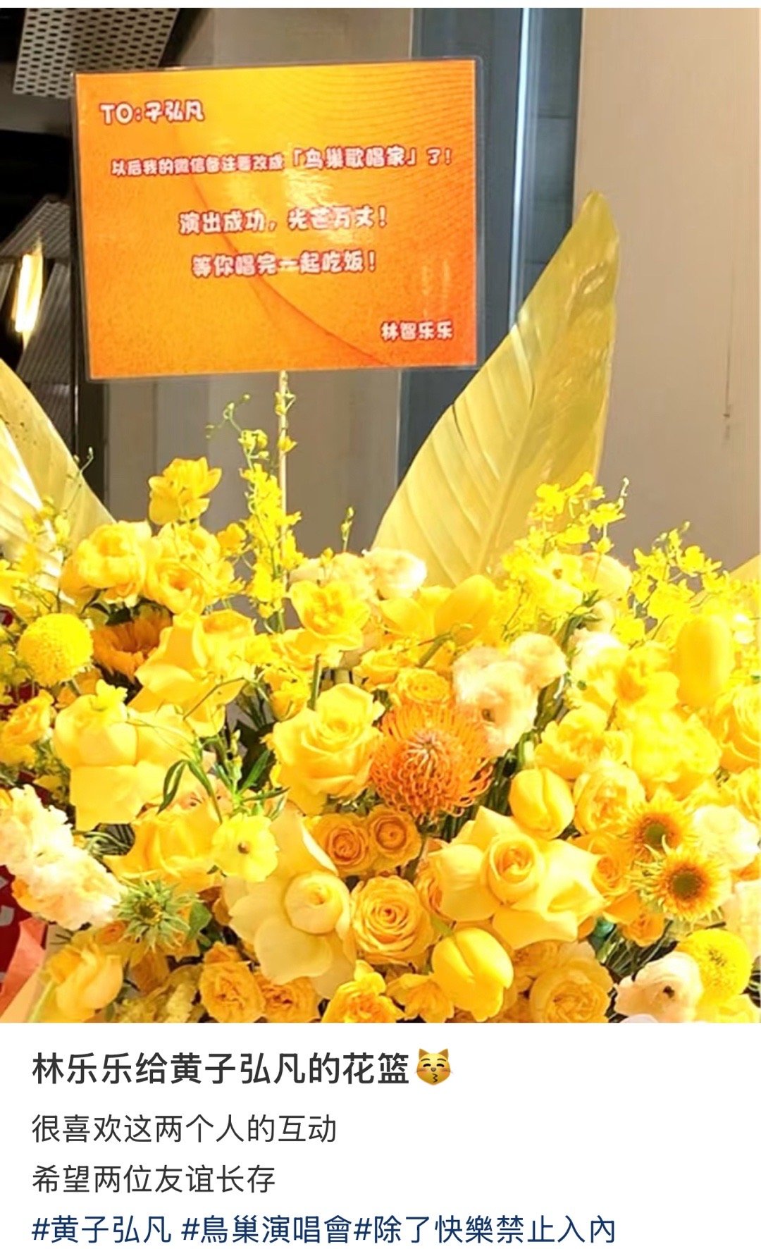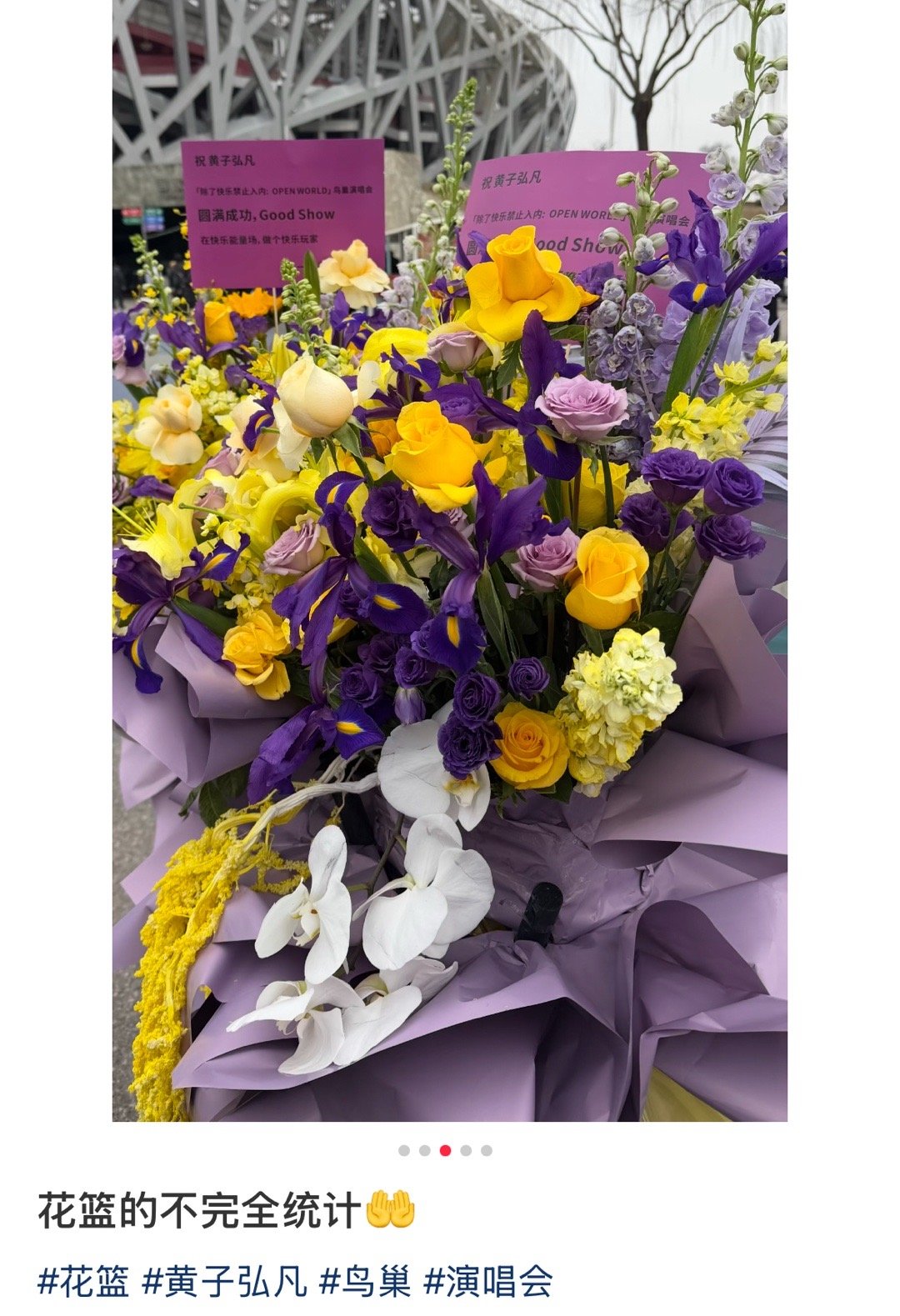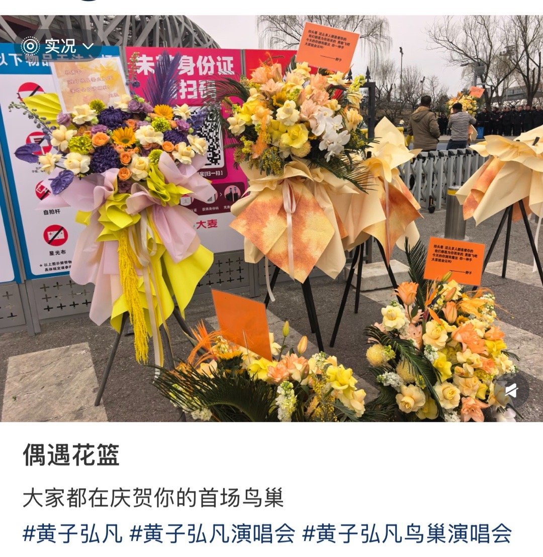 黄子弘凡内娱花篮名人堂 感觉半个乐坛的人都给黄子弘凡鸟巢演唱会送花篮了,黄子的人缘真的没谁了。祝演唱会一切顺利,圆满成功!🔥黄子弘凡鸟巢演唱会直播