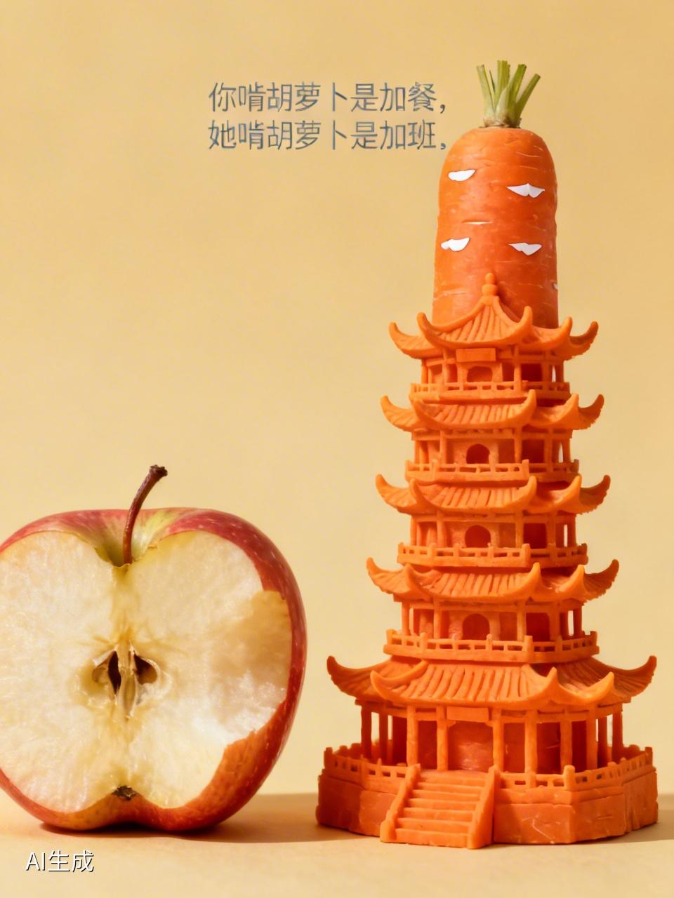 "你啃胡萝卜是加餐,她啃胡萝卜是加班" --- 第一段:看见你 凌晨三点刷到她的视频,我下意识摸了摸自己的牙。 陈琴,25岁,湖北恩施人。没有刻刀,没有针,没有3D打印。一根胡萝卜,一张嘴,五六天,啃出一座70厘米高的黄鹤楼。飞檐翘角,层楼叠榭,牙尖磨出来的精细,比我用工具刻的还像样。 我看了看手里啃了一半的苹果,突然咬不下去了。 第二段:刺痛你 我们总说没条件。没设备,没资金,没师傅带。但她连牙都没补过,门牙当凿子,犬牙当刻刀,最硬的部位全交给最软的器官。这不是励志,是羞辱——羞辱我们找的那些借口。 更狠的是什么?是沉默。她啃了上百件作品才火,之前没人看,没打赏,没"算法推荐"。万里长城,中国结,镂空锁链,全喂了猪。对,边角料喂猪,能吃的做菜,碎屑都不浪费。这种"没人看也要啃完"的劲儿,比牙齿硬多了。 我们连三天看不到数据就想放弃,她啃了上百根萝卜才等来一个热搜。 第三段:安放你 别模仿,你的牙受不了。但要记住这个理儿:真正的工具,是长在自己身上的。 她选胡萝卜也有讲究。白萝卜刺激肠胃,青萝卜太硬,胡萝卜软硬适中、颜色鲜亮、还好保存。你看,连"随便啃啃"都是算计好的。这世上哪有什么突发奇想,全是蓄谋已久。 找到你的"牙齿"——那个不用花钱、不用申请、随时能开始的器官。然后咬紧,别松口。 > "世界奖励聪明,但敬重狠人。咬碎了牙往肚里咽是逞强,咬碎了萝卜雕成楼,才是本事。"同事追要零食 加班治愈餐 加班喝奶茶