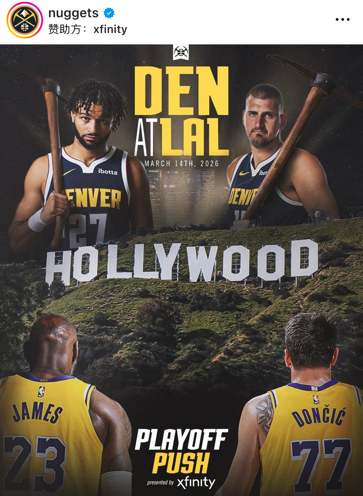 掘金官方非常重视明天这场比赛,标注了:“PLAYOFF PUSH”(冲刺季后赛)。