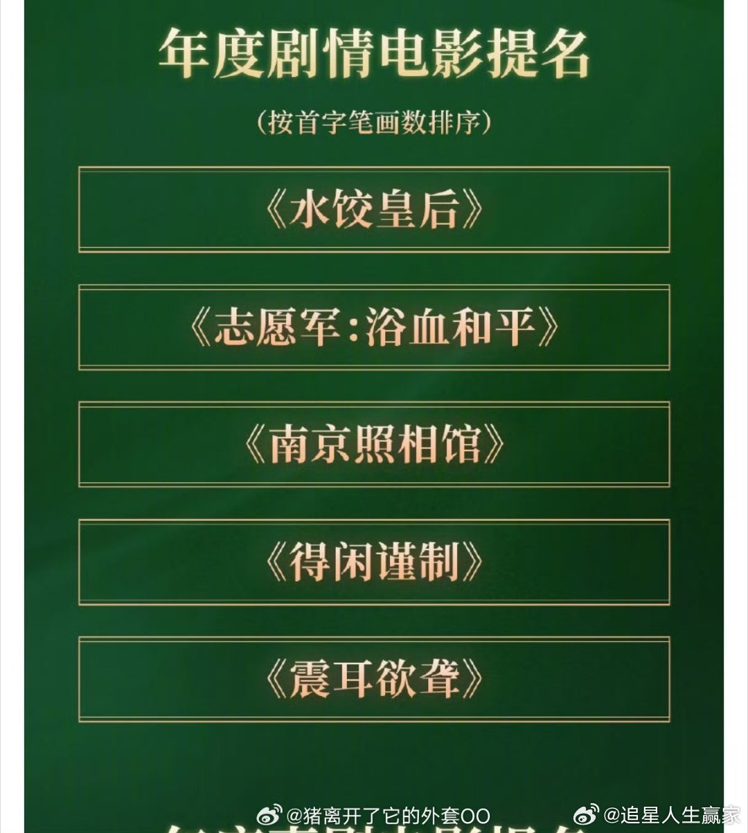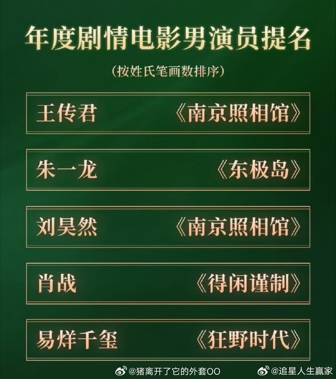 首届CMG中国电影盛典 ,得闲谨制有三项提名诶:年度剧情电影男演员提名: 肖战 恭喜