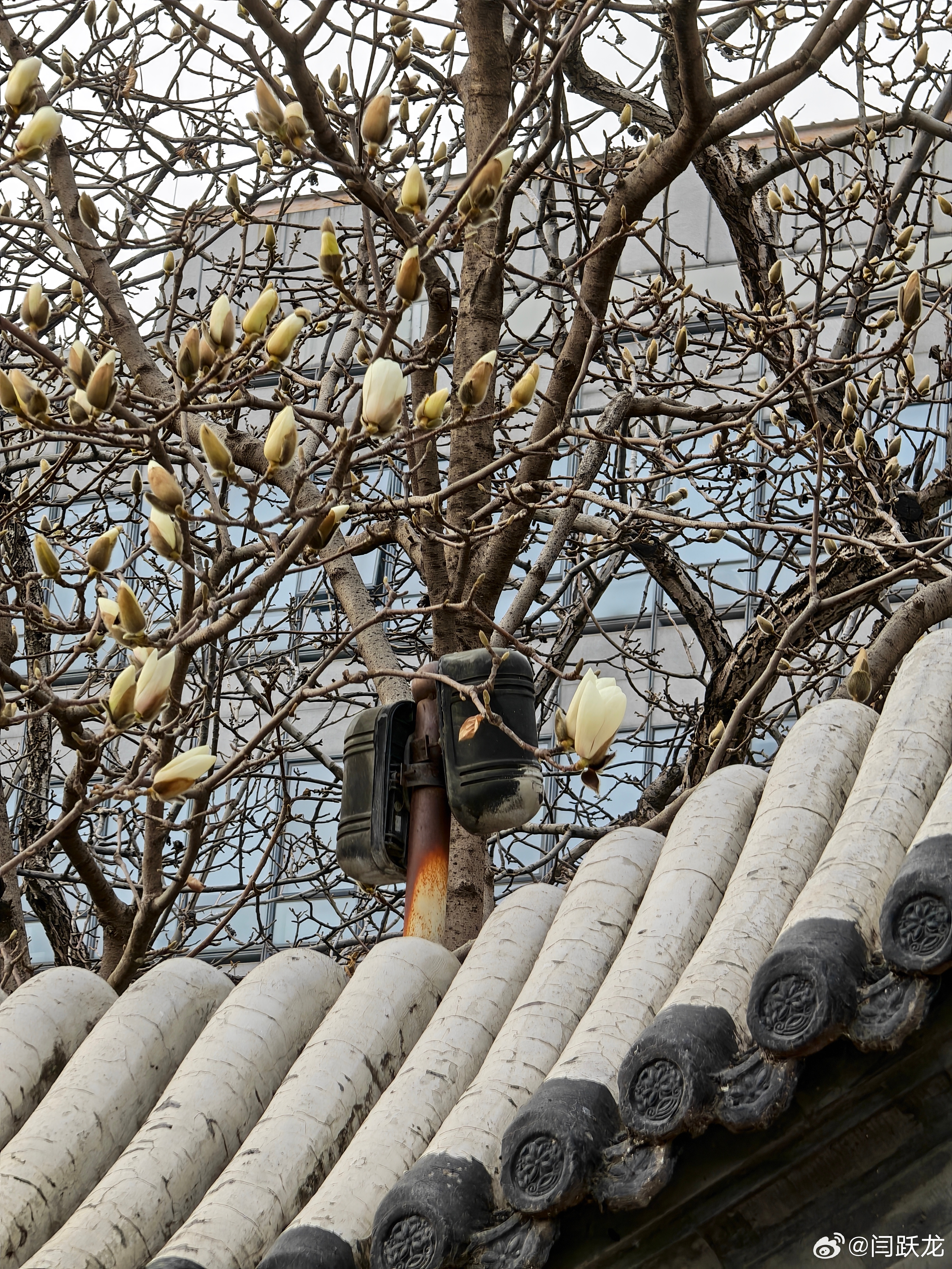 雍和宫的玉兰还没有全开。古代建筑