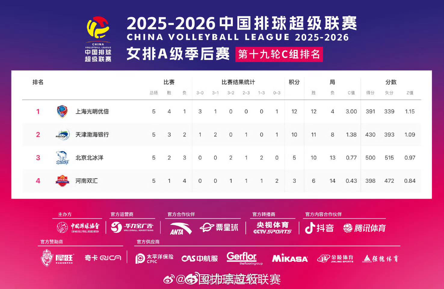 季后赛最后一轮比赛,C组的上海和天津女排仍不能松劲,还在忙着争小组第一,以避开锋