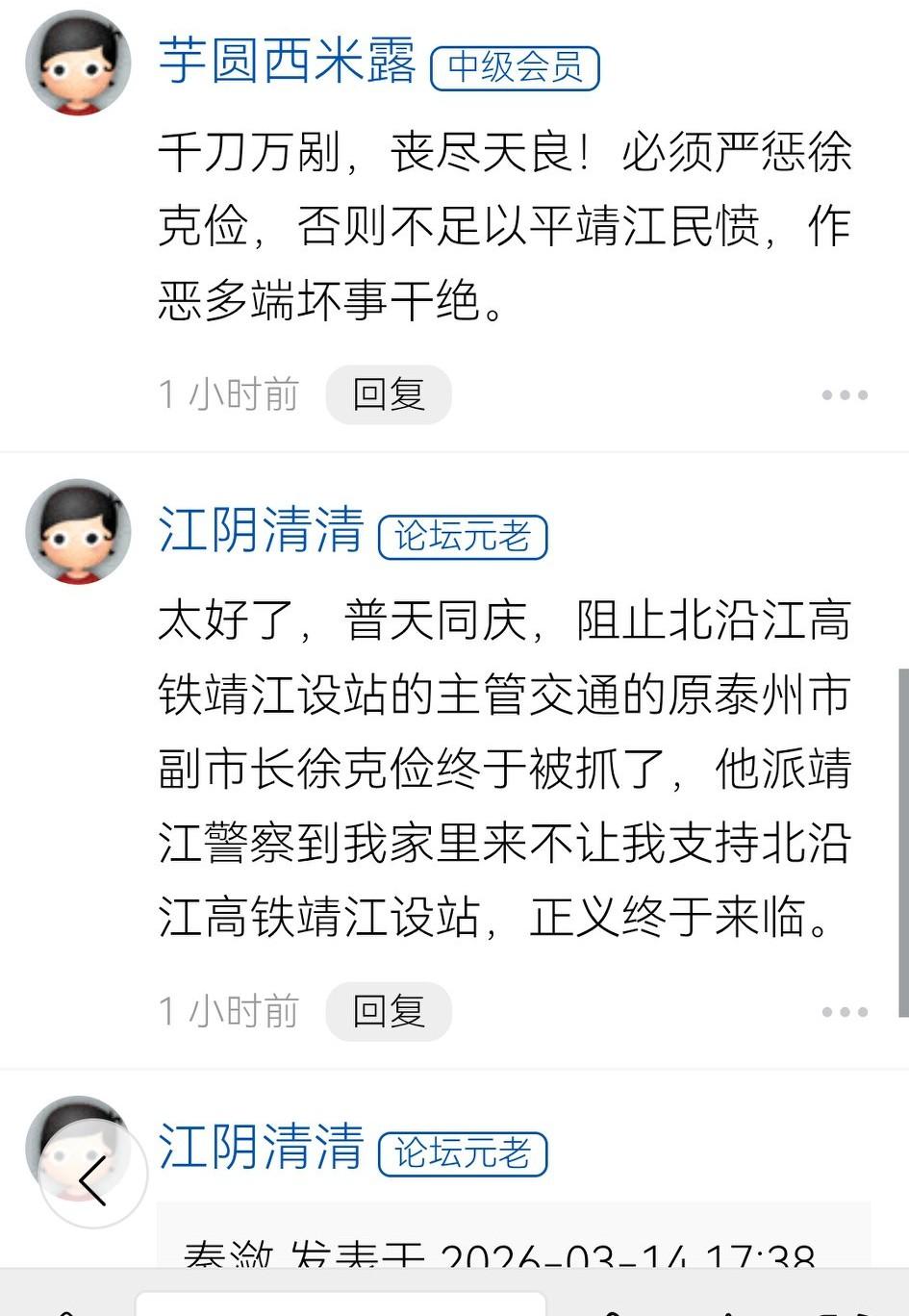 泰州老徐,政声人去后,唉。 泰兴