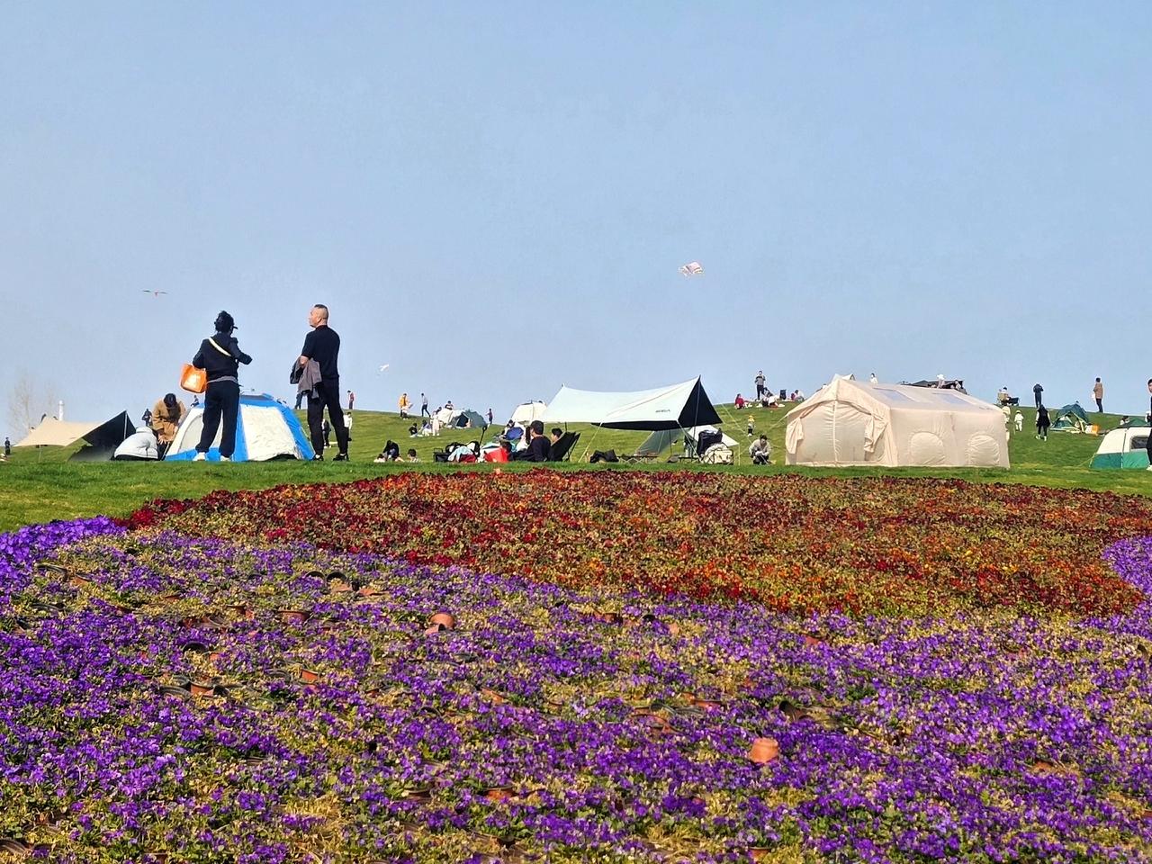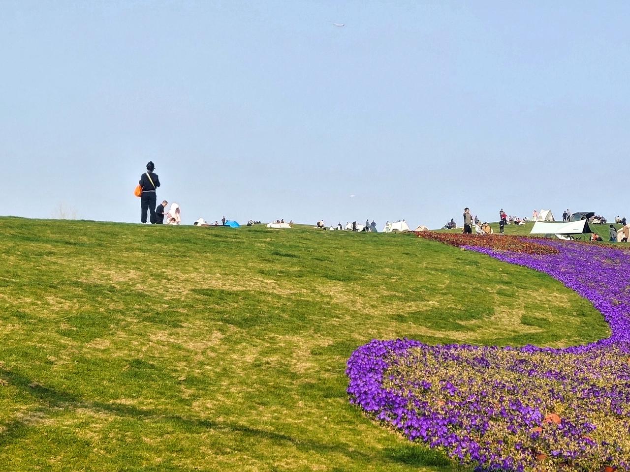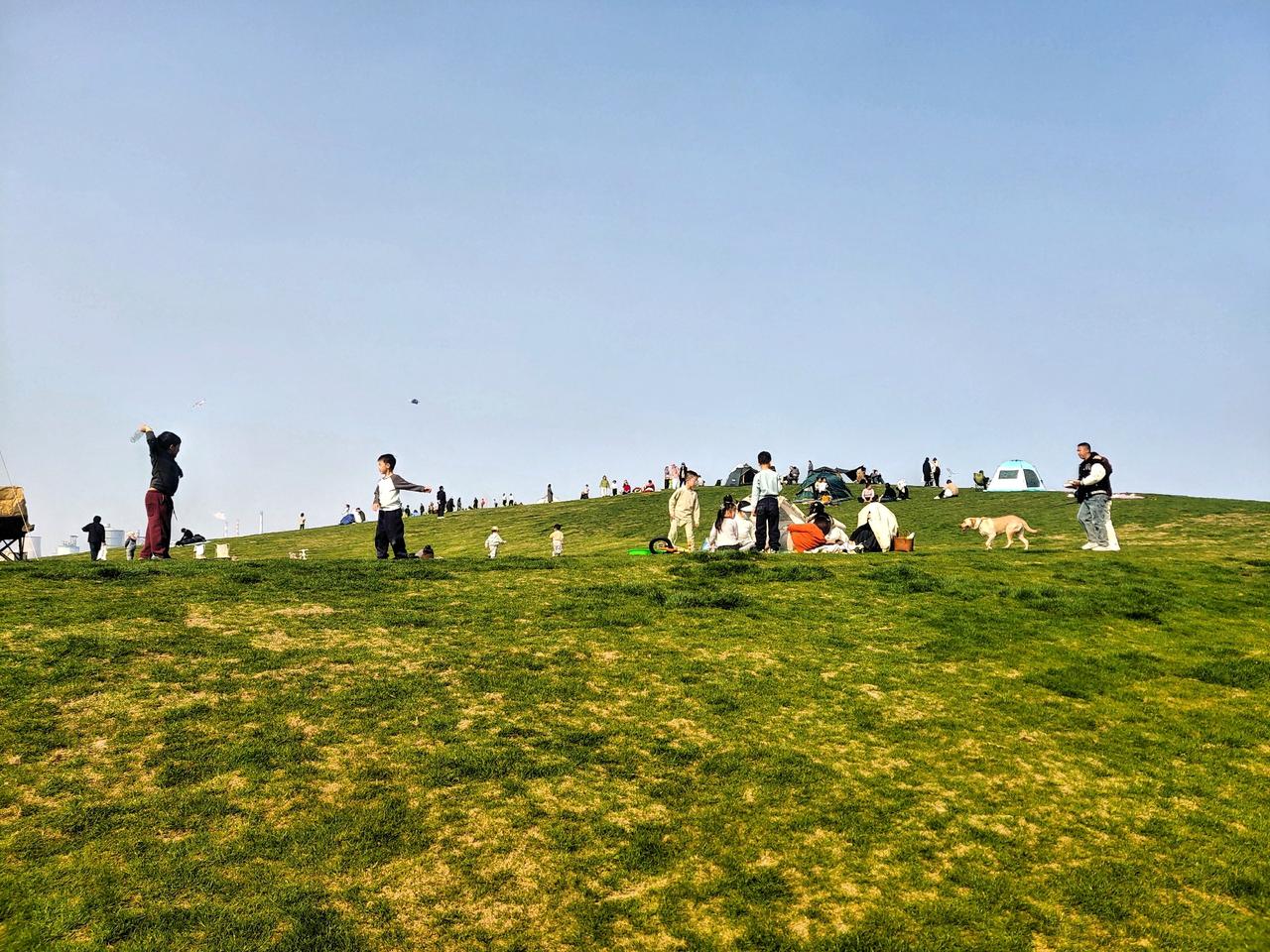 杏湖公园旁一块高地连着一大块平地,去年全部铺上了草坪,在城市人眼里,可以遐想成大草原,假装阿勒泰,可以在这里奔跑,撒欢,露营,放风筝……只要收起瞭望远方的眼睛,只关注脚下的草地,这就是一处难得的绿野。 今天阳光明媚,风也温柔,草地上搭了很多的帐篷,大人们或坐或躺,享受着阳光和草地,有一种偷的浮生半日闲的惬意,有人带着狗子在溜达,小孩在草地上翻着快乐的筋斗,每翻一个,都有亲友们为他叫好,小情侣为了风筝放的好不好而争执,也有小孩在大人陪同下,下到小河边捞鱼捉虾捡螺丝,有没有无所谓,有那个意思就行。 人是多么向往自然啊,那些青山绿水环抱的小村庄多么让人留恋,可是我们为什么又不愿意离开这钢筋混凝土的城市呢。