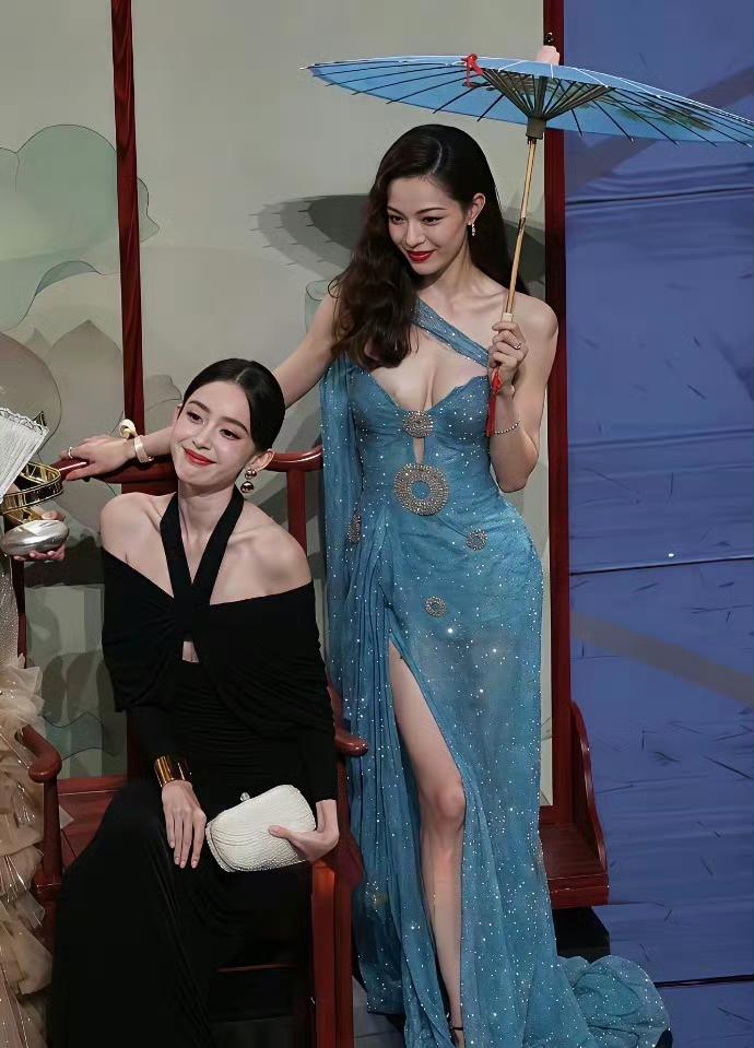 钟楚曦:娜扎,今天这身造型我可是偷偷练了好久,就为了不被你抢风头。 古力娜扎:楚曦,你太谦虚了,你这身蓝裙一出场,我差点以为海神下凡了。 钟楚曦:海神可没你这么高的气场,你那172的身高,站在我旁边我都得仰着脖子说话。 古力娜扎:那是你太迷人,我仰视你才正常,咱俩这是“东方美人”的巅峰对决,不是比高。 钟楚曦:那你说,咱俩谁更“全民女婿”的审美标准? 古力娜扎:你负责灵魂,我负责颜值,合起来才是满分答案。 钟楚曦:行,那下次活动我穿黑裙,你撑伞,咱再来一组“国风双璧”。 古力娜扎:成交,不过这次我得选红伞,跟你那蓝裙撞色才够惊艳。