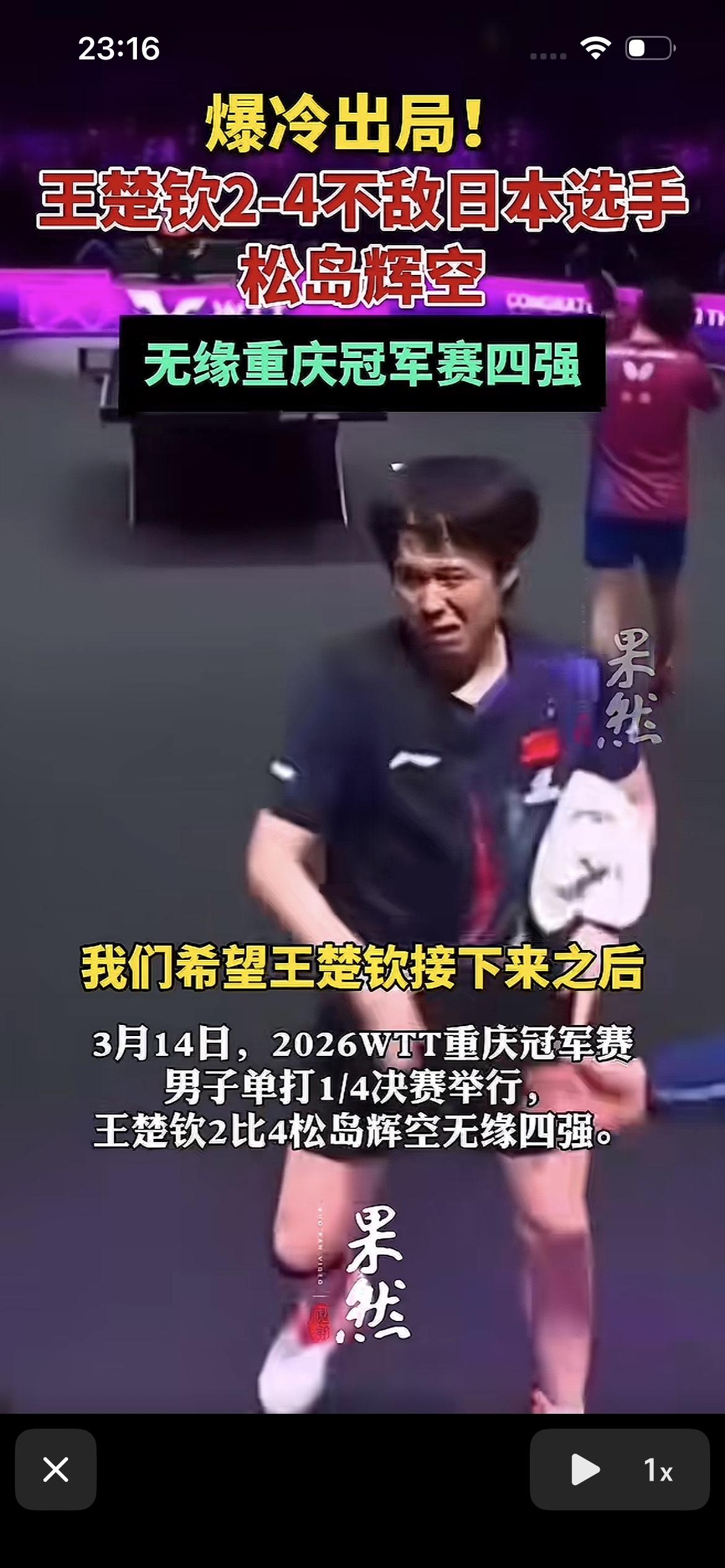 王楚钦“爆冷”输给松岛辉空:3个细节成“败因”!在这场1/4的比赛中,王