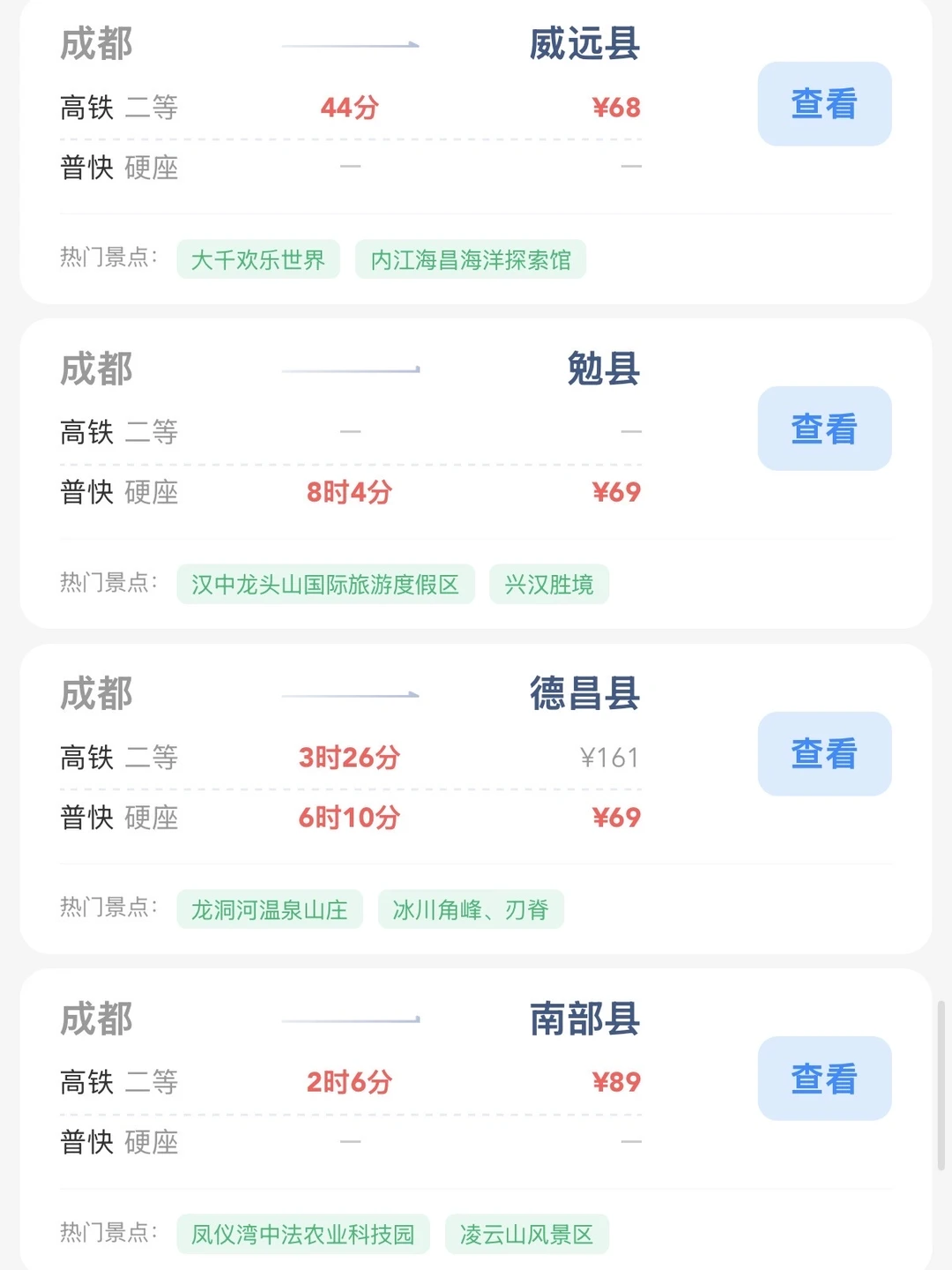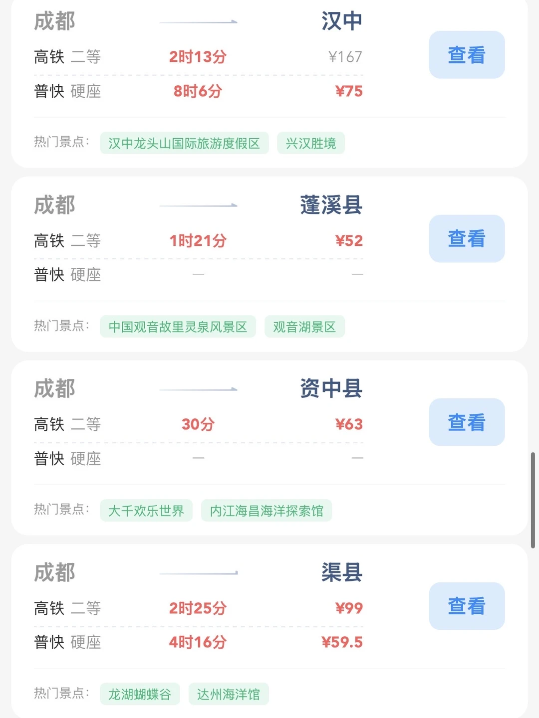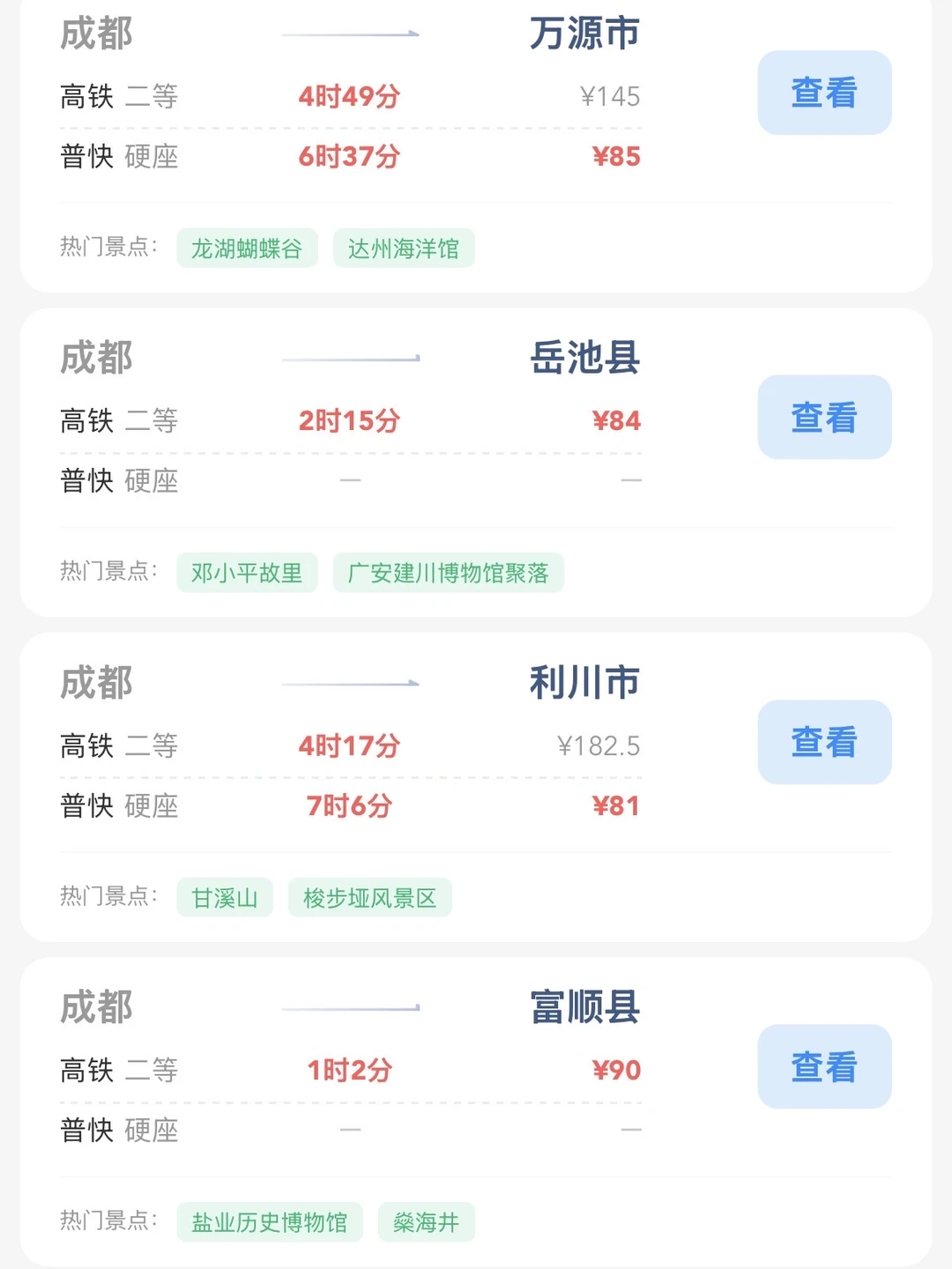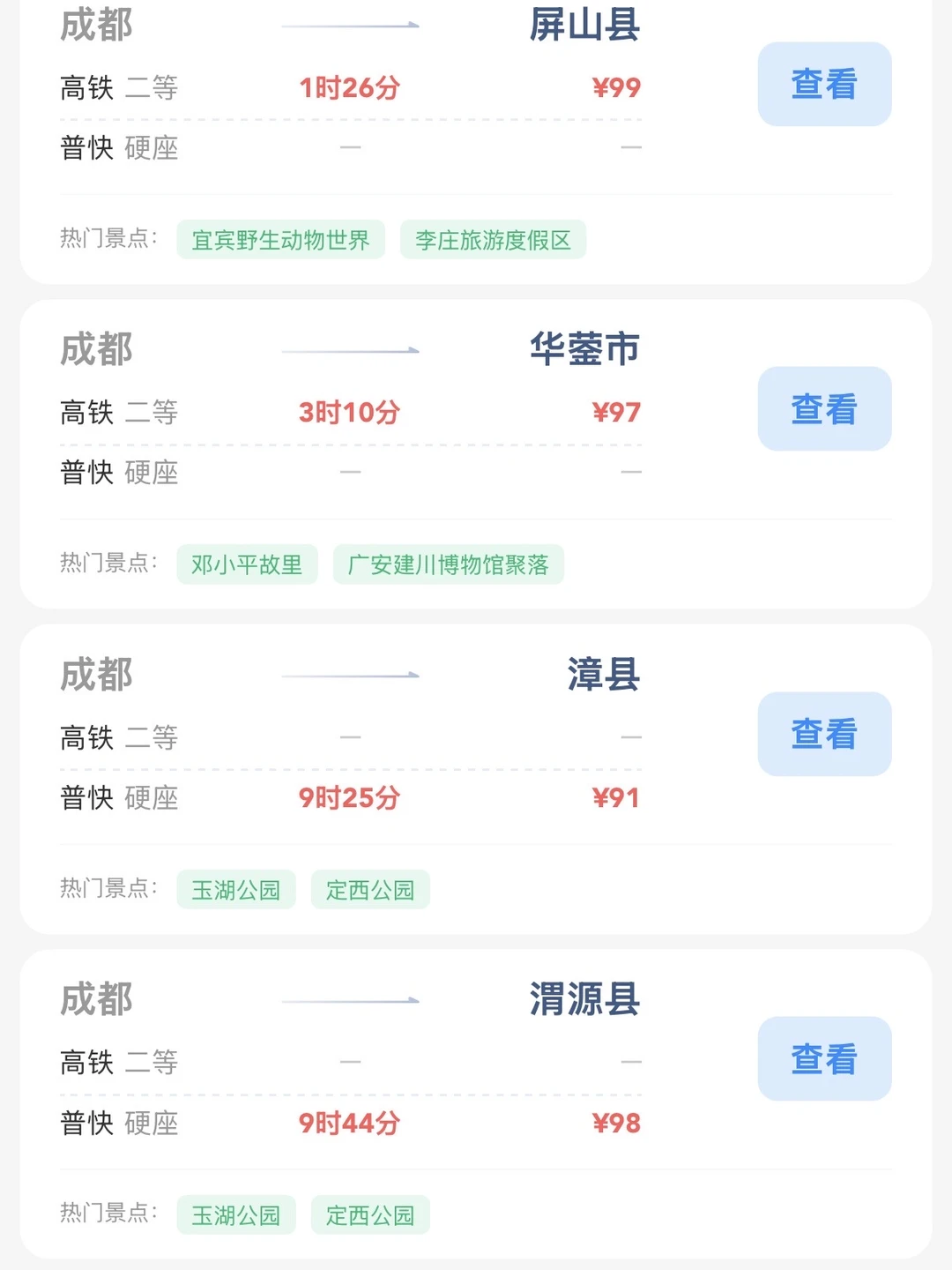成都的打工人和学生党请进! 帮大家整理出来了在成都100块的火车票就能去的旅游城市合集 大家可以看看有没有自己想去的旅游城市 可以找个周末约上朋友们出去玩呀[赞R]