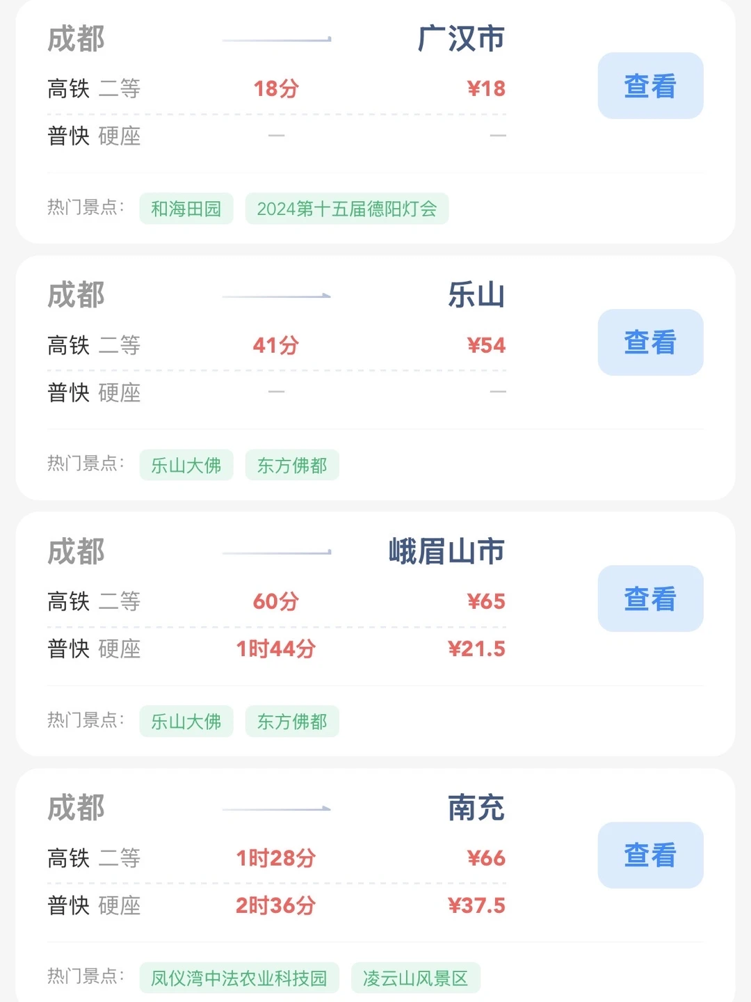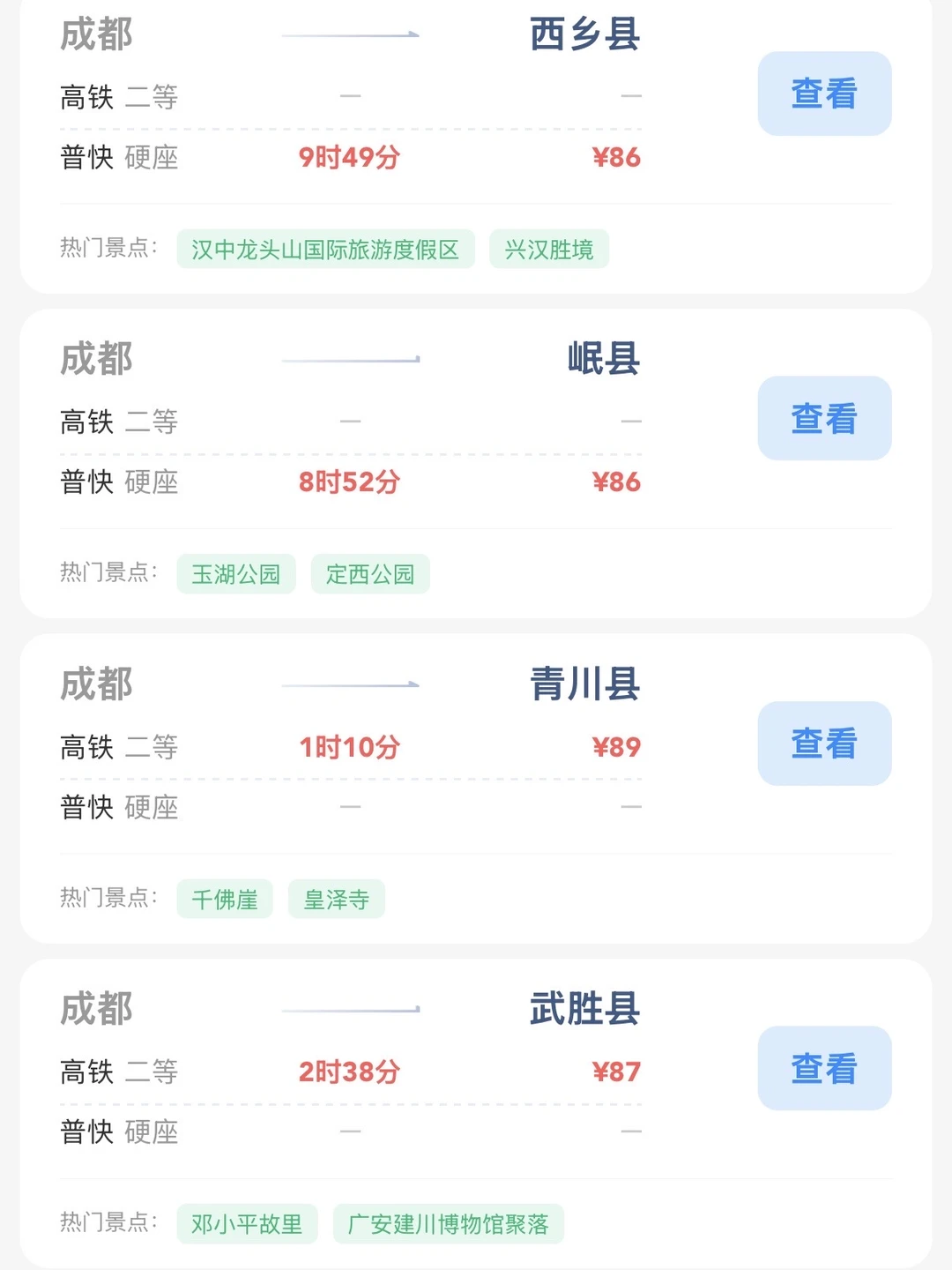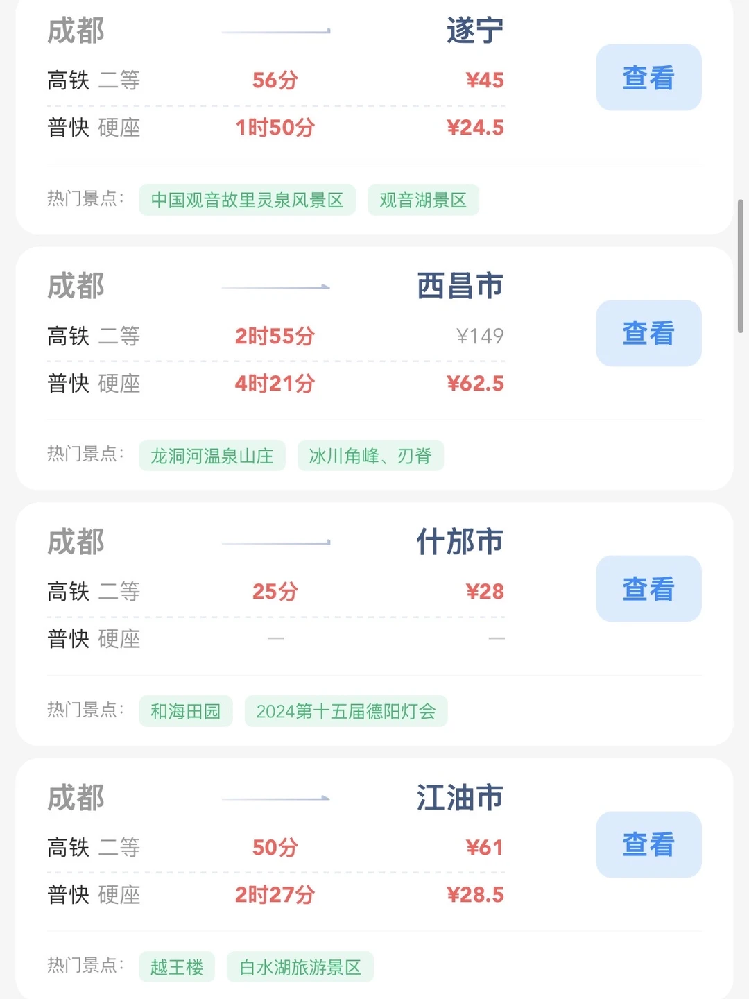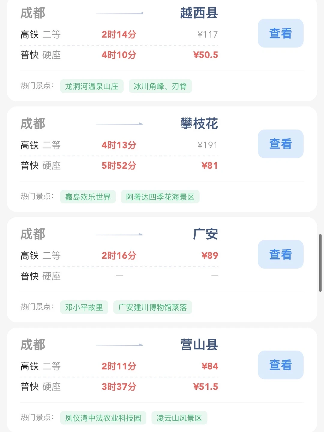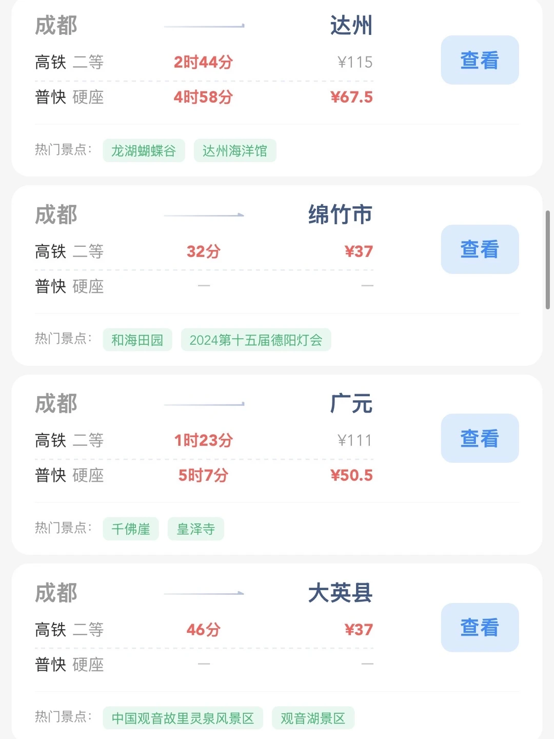 成都的打工人和学生党请进! 帮大家整理出来了在成都100块的火车票就能去的旅游城市合集 大家可以看看有没有自己想去的旅游城市 可以找个周末约上朋友们出去玩呀[赞R]