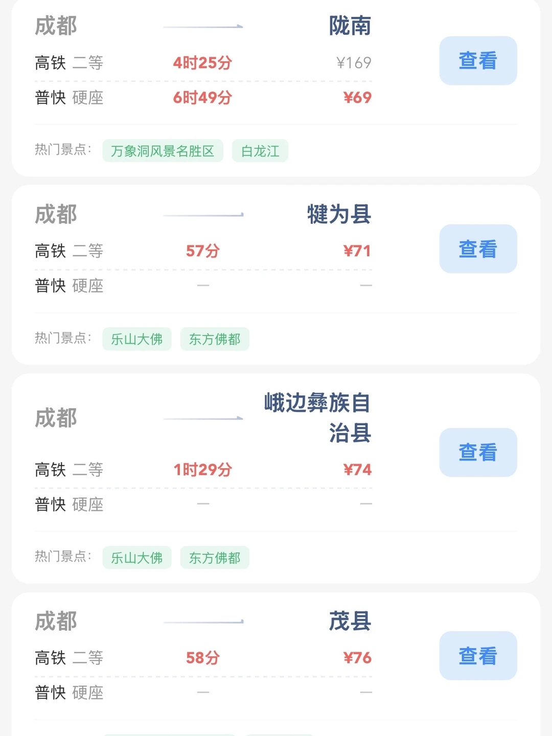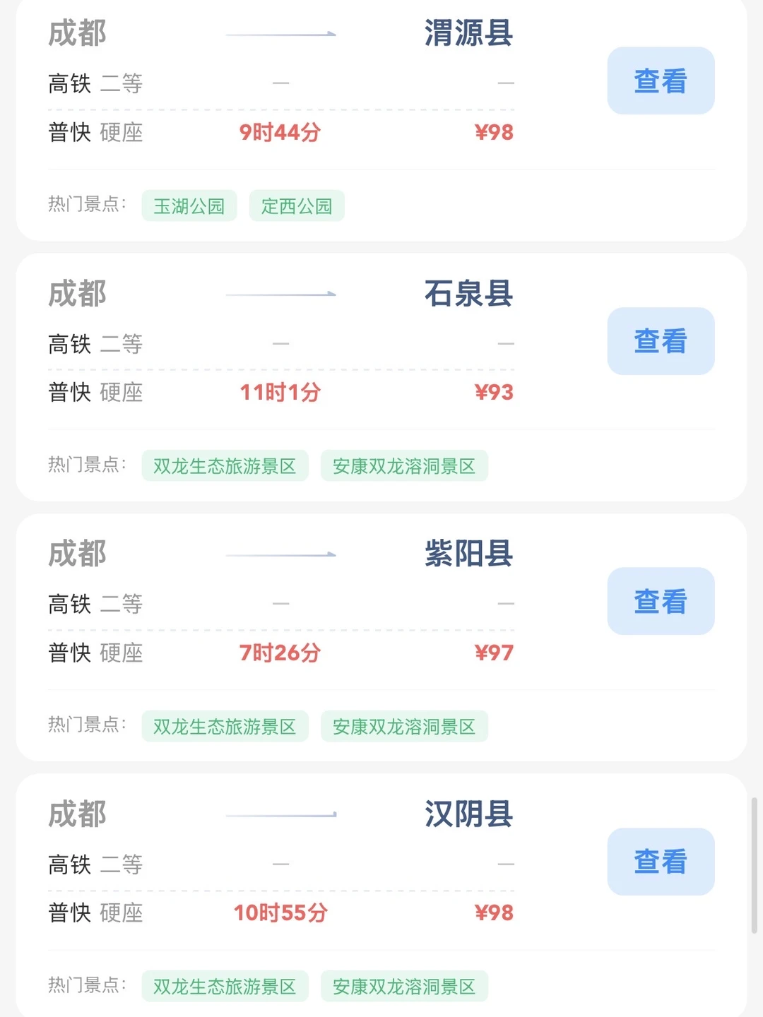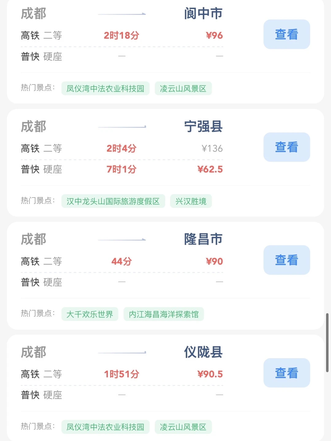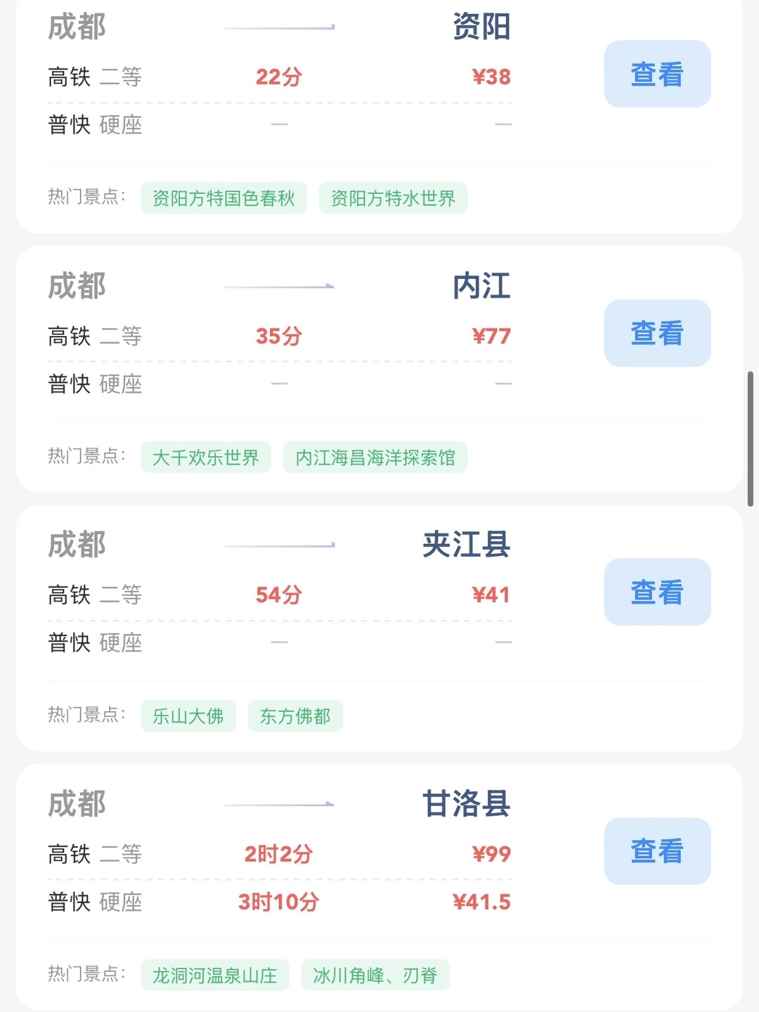 成都的打工人和学生党请进! 帮大家整理出来了在成都100块的火车票就能去的旅游城市合集 大家可以看看有没有自己想去的旅游城市 可以找个周末约上朋友们出去玩呀[赞R]