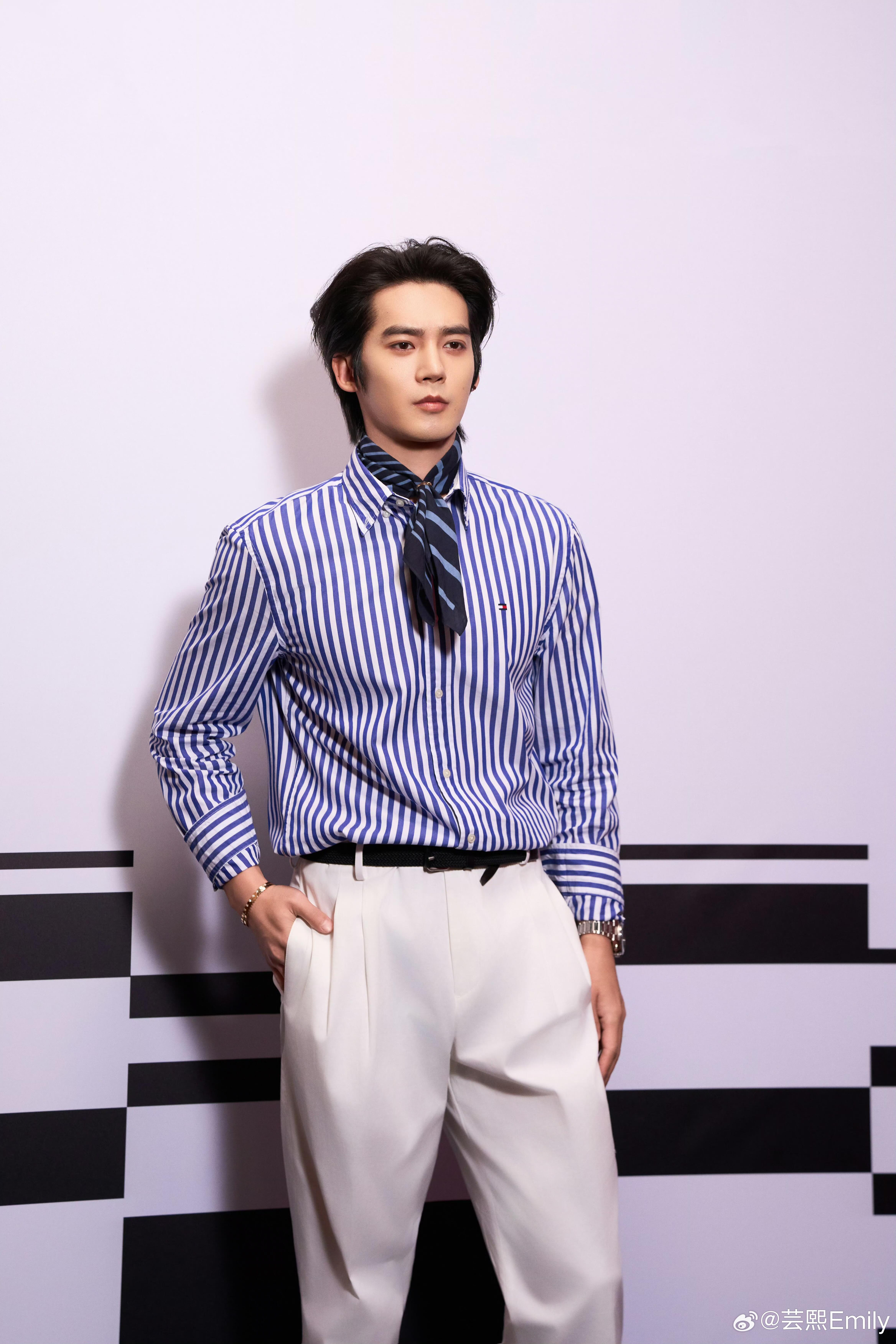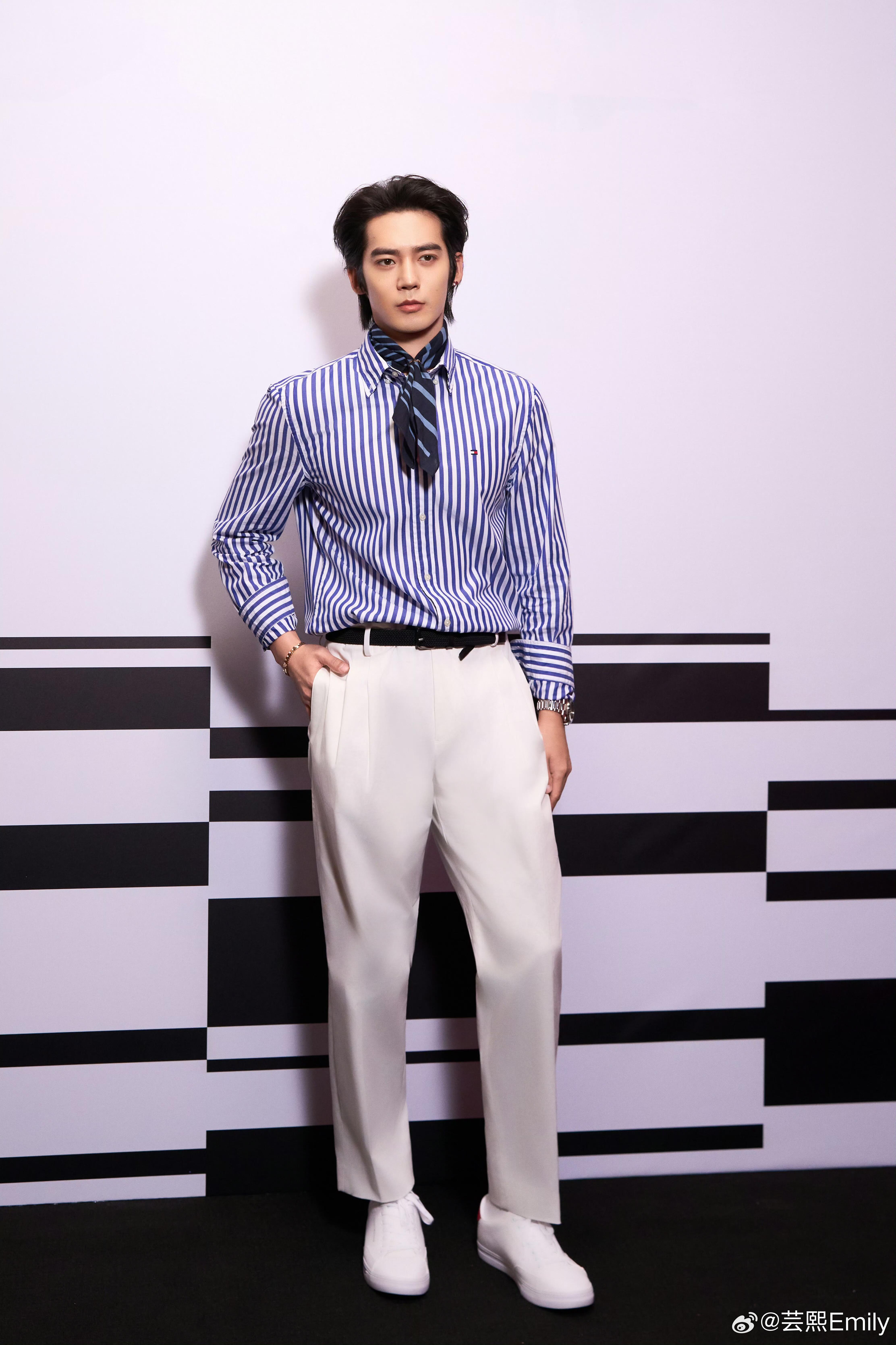 于适F1活动造型,简约经典的条纹搭配·于适今日F1活动上身条纹衬衫和西裤搭配,佩