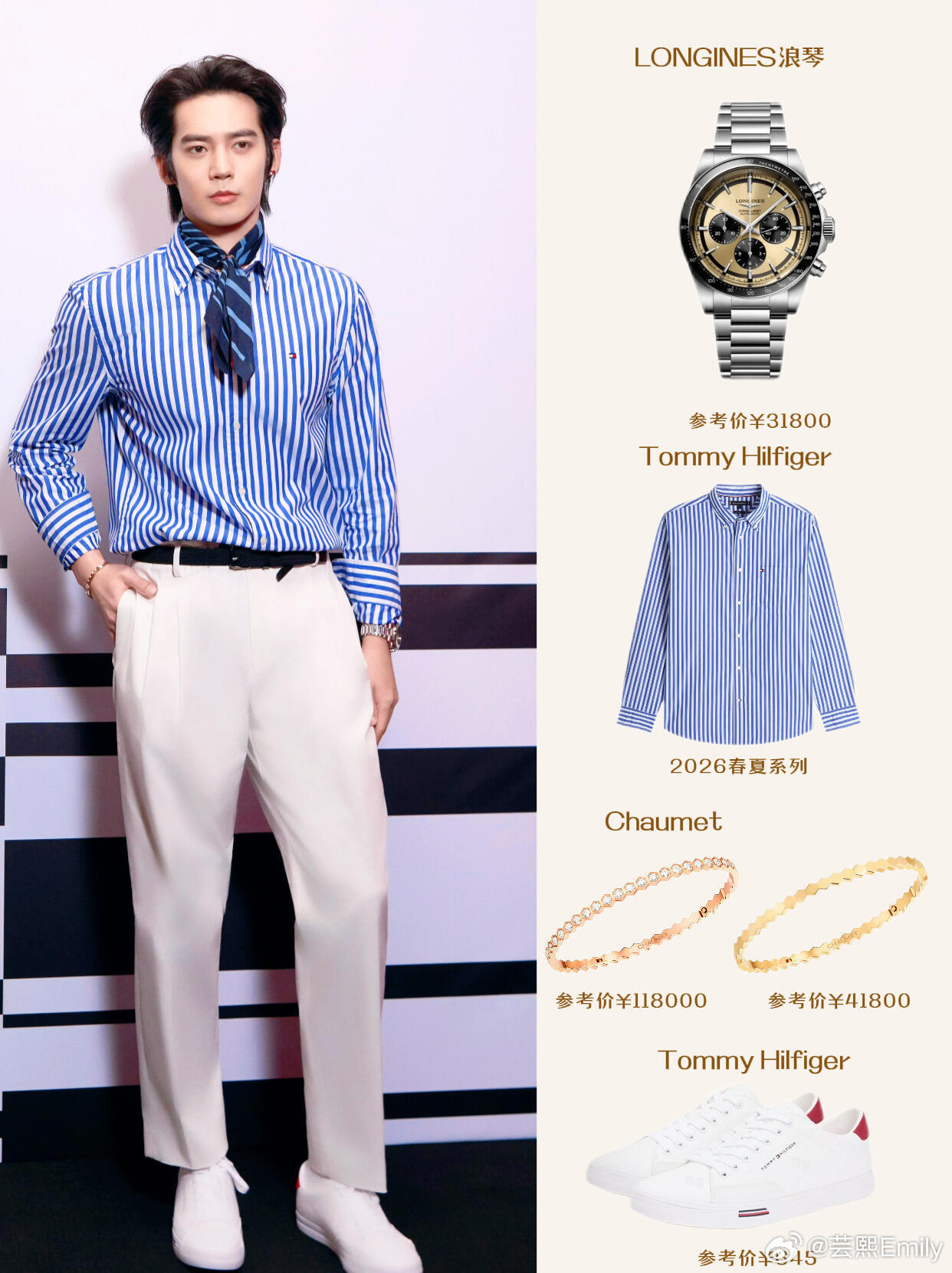 于适F1活动造型,简约经典的条纹搭配·于适今日F1活动上身条纹衬衫和西裤搭配,佩戴尚美巴黎手镯和浪琴手表,经典耐看又高级。