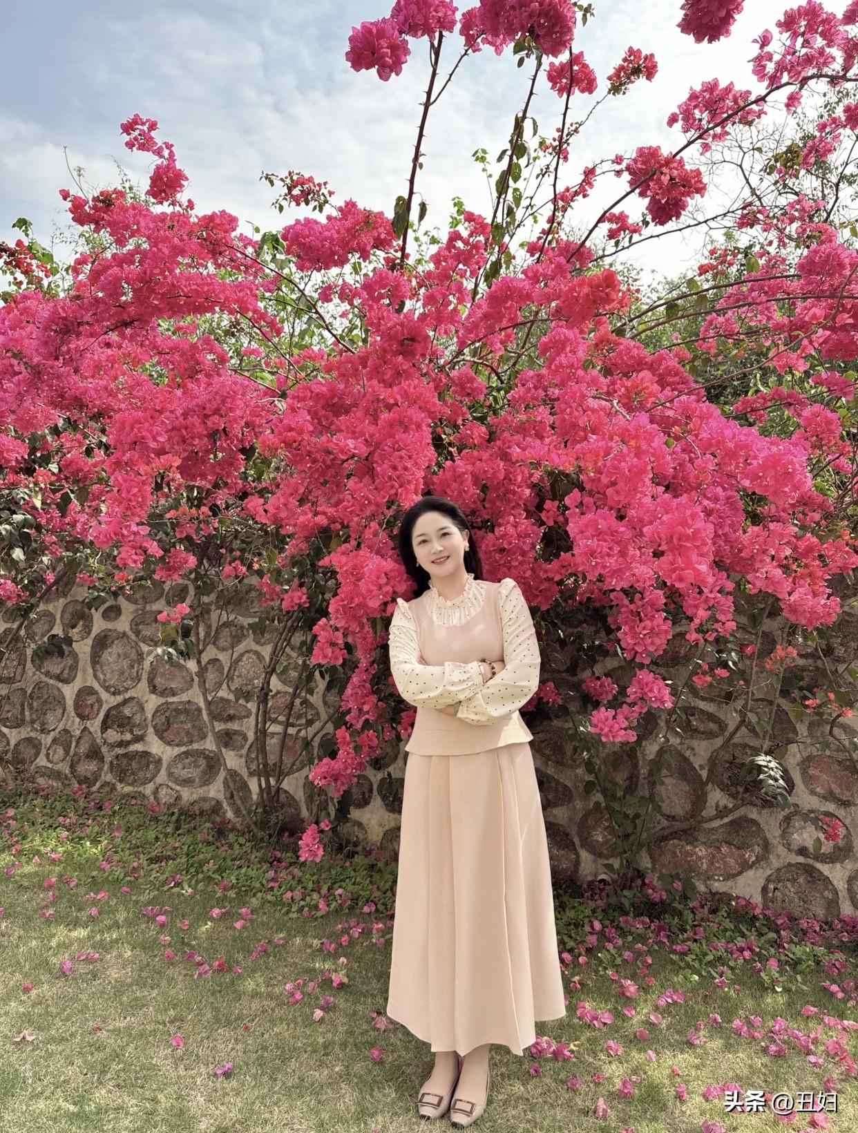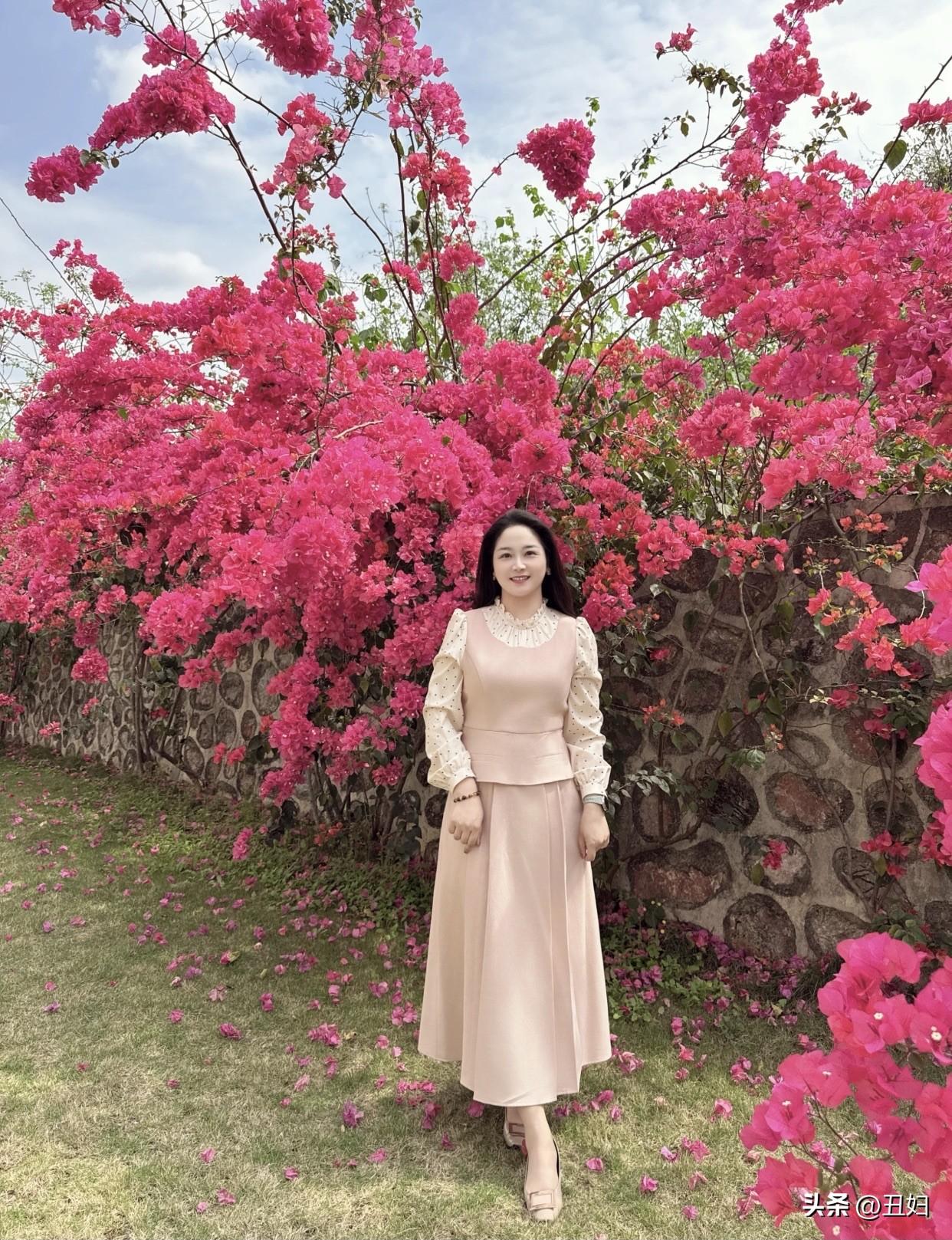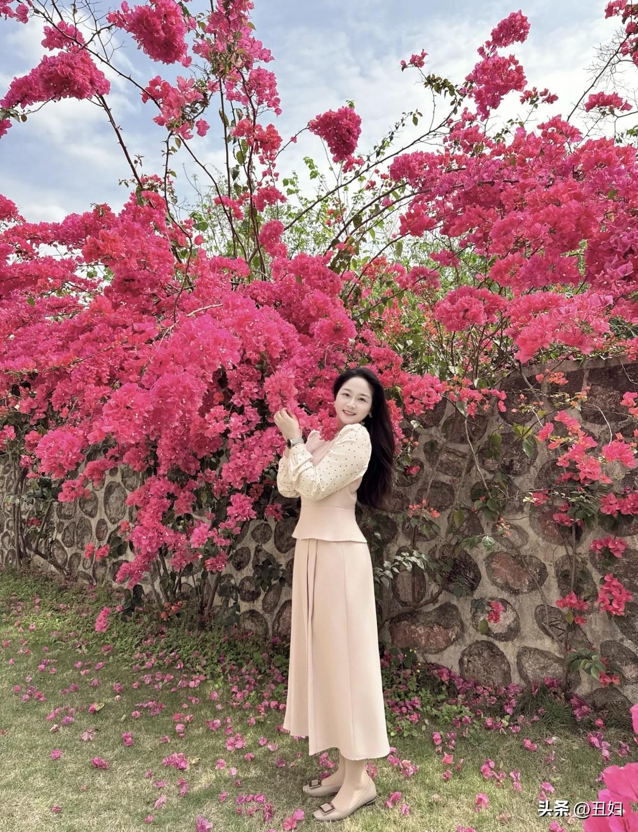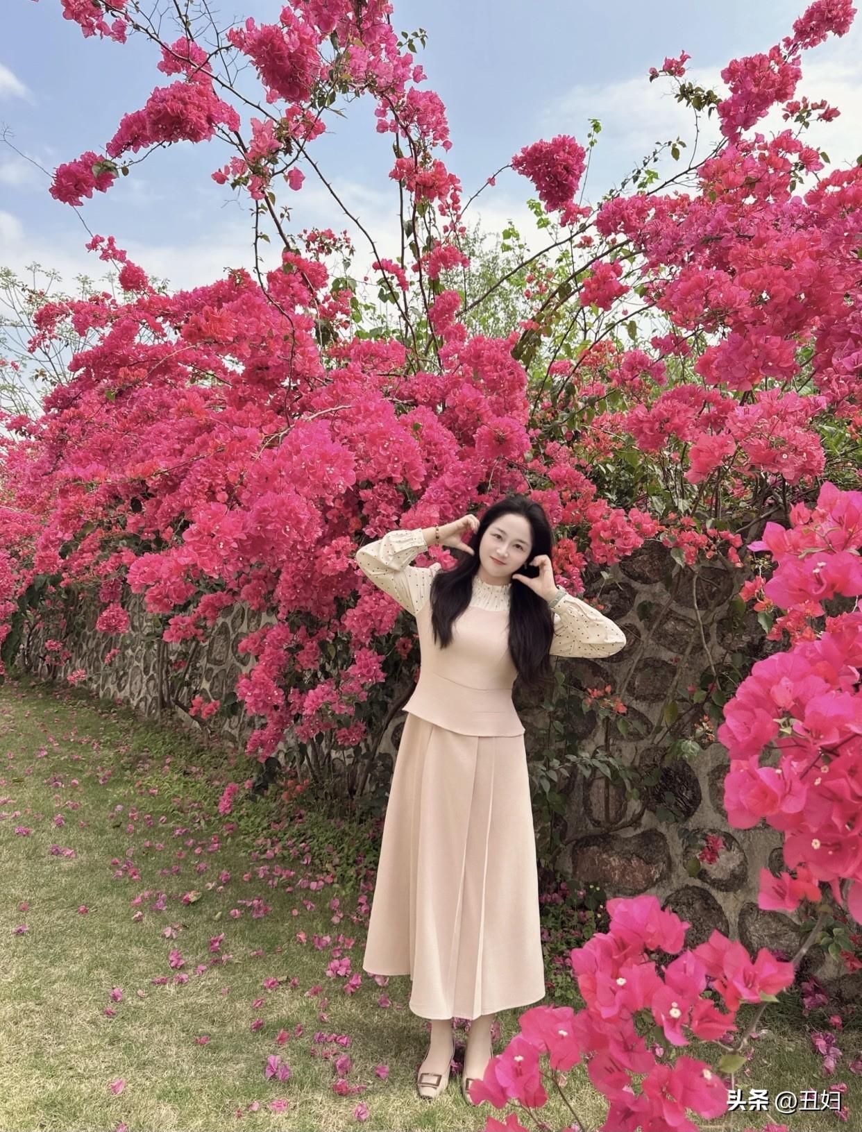 春日生活打卡季粉衣美人倚花丛,笑语盈盈似画卷。