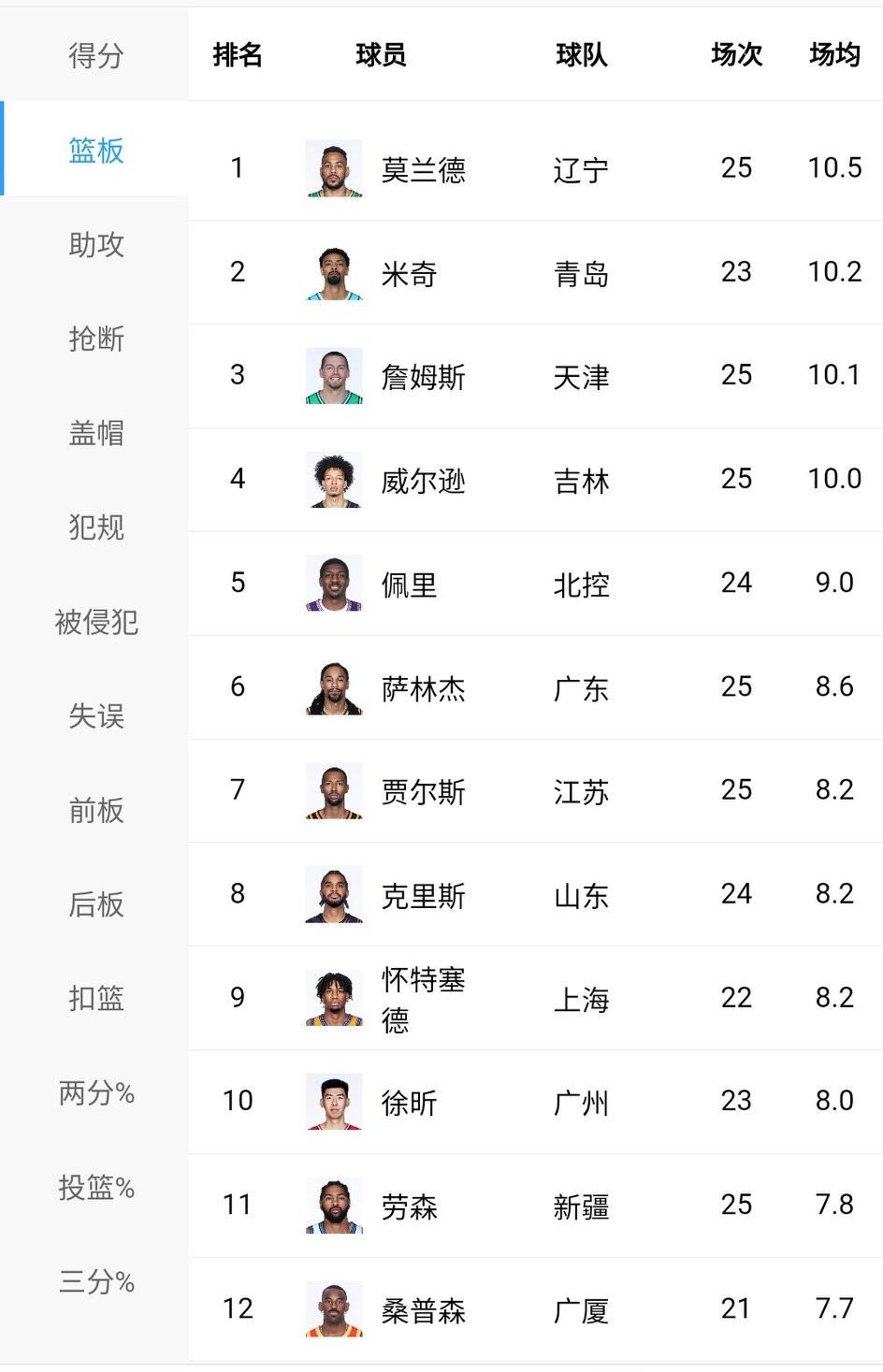 CBA已成为外援的天下,无论得分还是篮板。 得分方面,前十名只有郭昊文排名第6,
