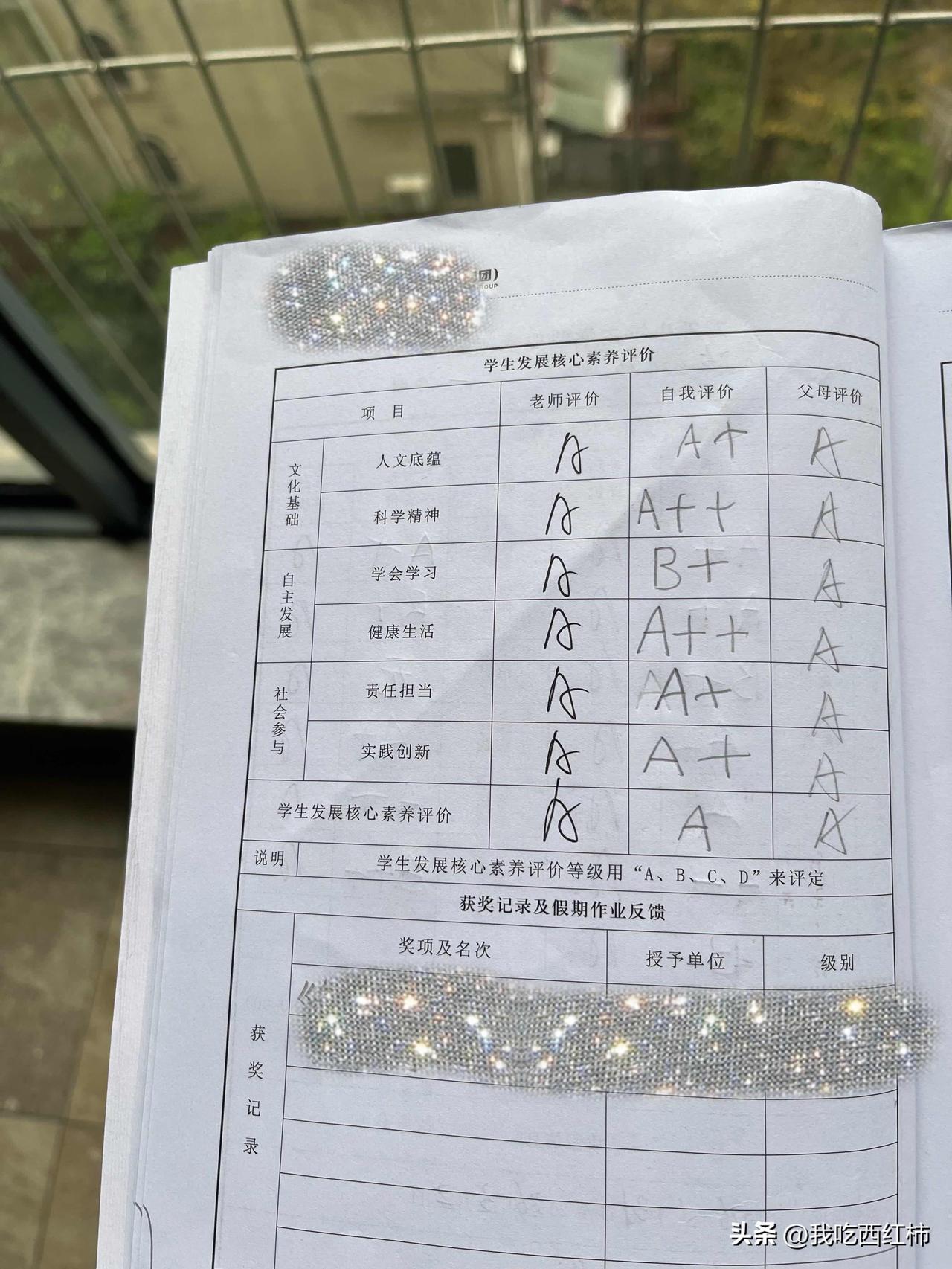 一年级的女儿成绩一般,心态好极了 昨天开学的时候,班主任让把'学生手册'填好上交,女儿上一年级。 '自我评价'那些我让女儿自己填,她边给自己各科成绩评等级的时候边说:“妈妈,我感觉自己成绩还不是很好”。 我说:“没关系,我们这学期还可以继续努力,上学期我们也学会了很多知识”。 在填到'学会学习'那一项的时候,她只给自己评了B+,她说:“我这一项做的不怎么好”。 我问:“怎么个不好法”。 她说:“就是妈妈叫我写作业的时候,我会磨磨唧唧”。 填最后的'自我评价'那一栏时,我说:“你上学期上学感受如何,就写什么”。(不会写的字我给她写草稿纸上,她再照着写) 她写了'开心、爱自己、想考100分'。 看了她写的自我评价,我感觉有一束阳光照进了我的心里,瞬间充满喜悦,此刻我知道我的女儿心理非常健康,这比看到她考100分还开心,因为她喜欢上学啊。 去年第一学期,每天早上都是开开心心去上学的,放学的路上也是蹦蹦跳跳的。 每次考试的时候,如果考了'C+',她回来会跟我说:“妈妈,我觉得有'+'就是很好的是吧”。 如果考了'B',回来会跟我说:“有些同学还考了C、D呢”。 如果考了'A',回来会跟我说:“妈妈,我觉得有'A'就行了哈”。 如果考了'A+',回来会跟我说:“妈妈,我要起飞了,给你看下我的实力”。 哈哈,我这女儿真是成绩一般,心态可好极了。