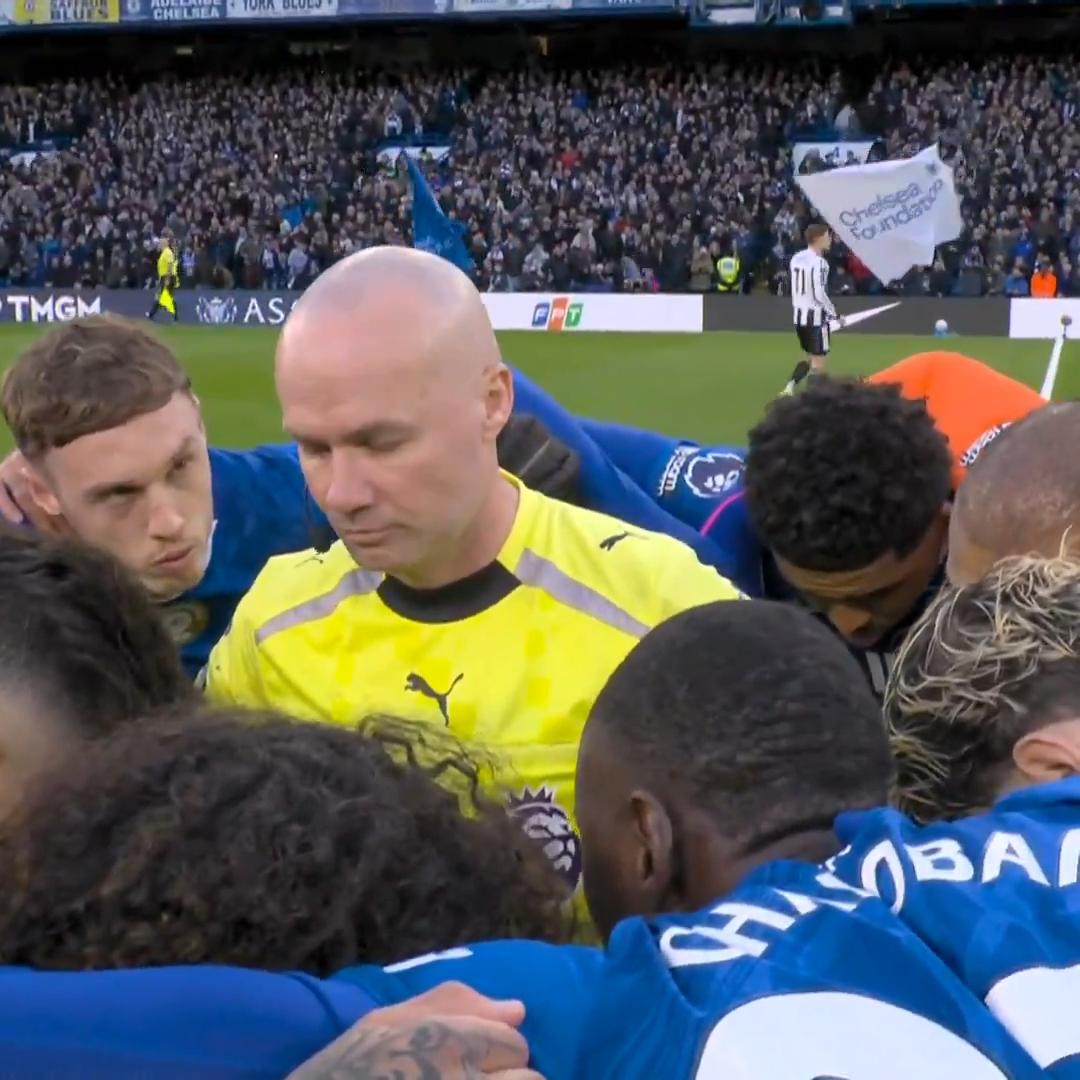 【帕尔默:裁判你在干啥😂?】英超第30轮,切尔西主场0-1负于纽卡斯尔联。比赛前出现“活久见”的一幕,蓝军球员在中圈打气时,裁判保罗·蒂尔尼被围在中间! 被围在中间的蒂尔尼显得有些尴尬,这时帕尔默抬头、疑惑地看了看蒂尔尼(图1),随后蒂尔尼又看了看帕尔默,两人简单聊了几句(图2),场面真是太搞笑了😂!切尔西