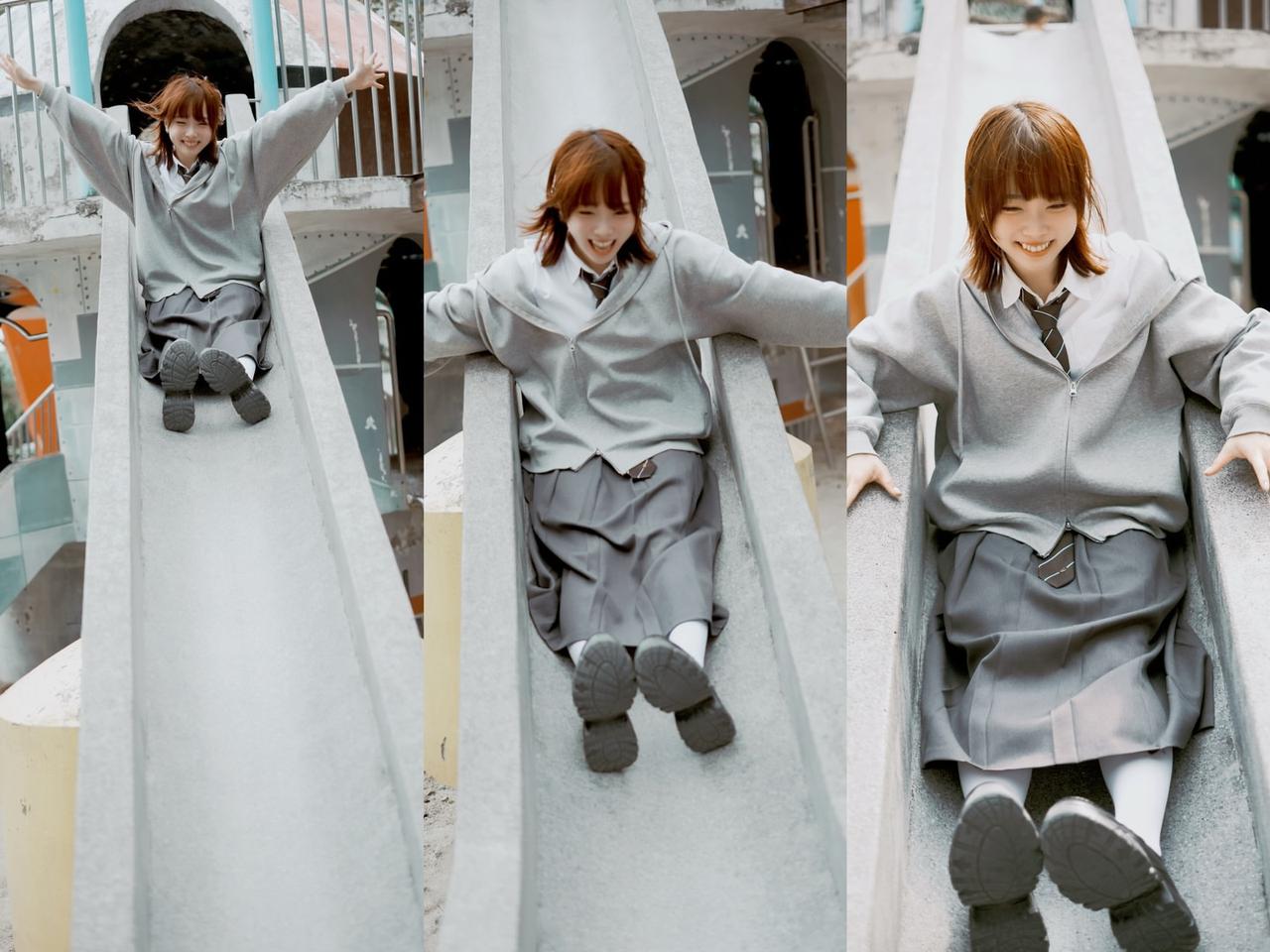 校园少女在黄色拱门下,清新自然,青春洋溢晒晒少女靓影 分享甜美小姐姐随手拍