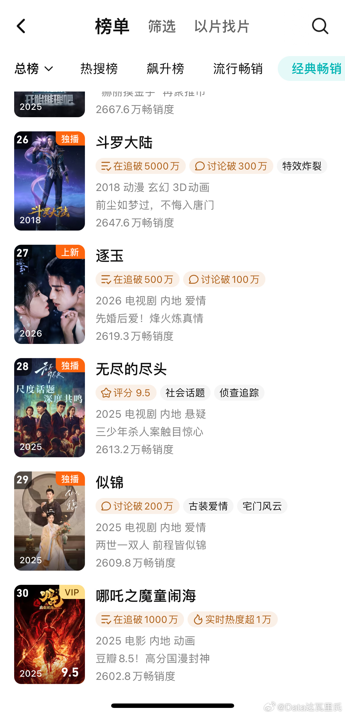 开播第9天逐玉进入腾讯拉新年榜 数值2619.3万,榜第27拉新周榜依然第一,数值4611.4,无压制数值6340,已超《折腰》,上升至第2,在许我之下。