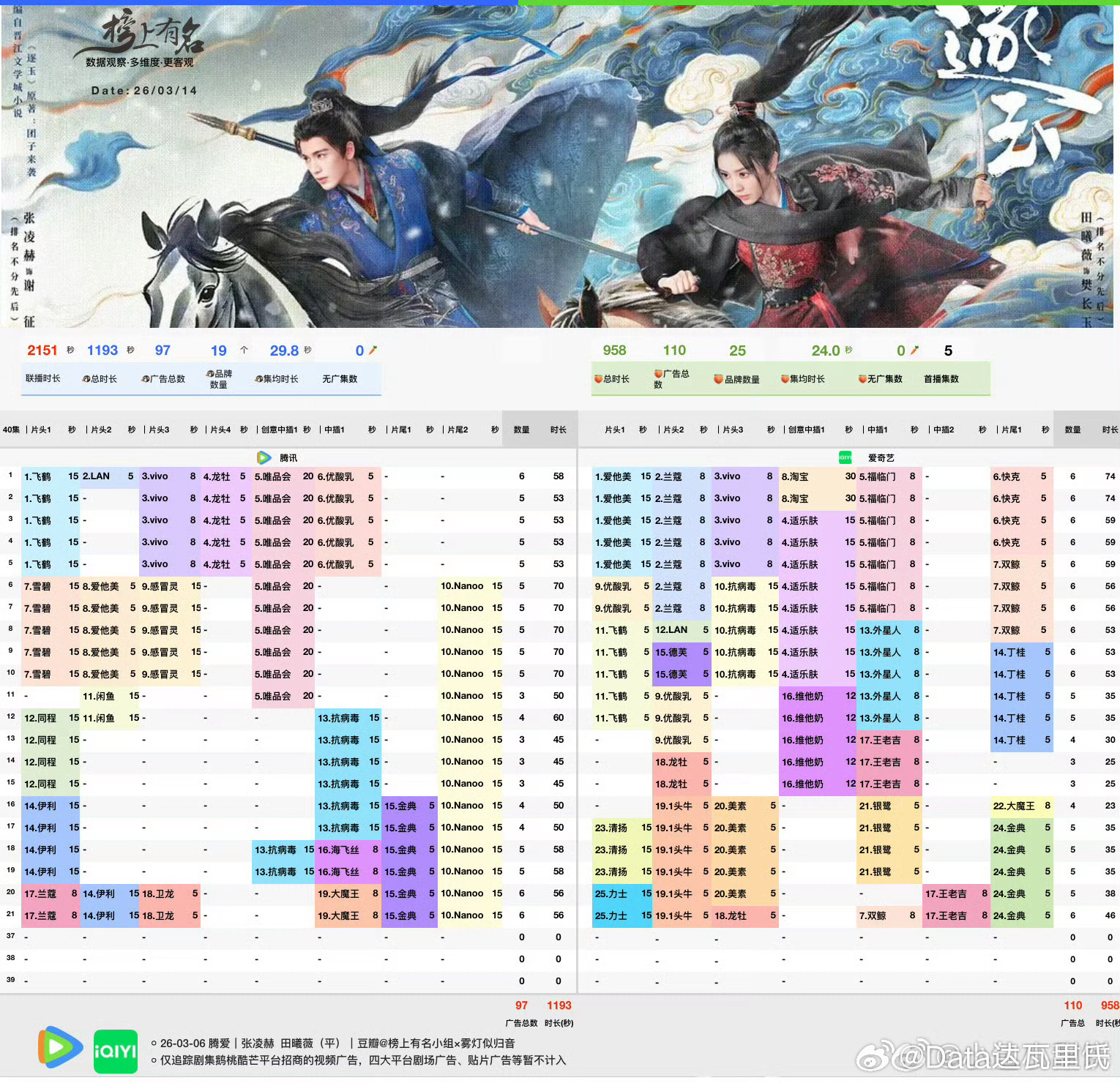 逐玉招商 鹅桃双平台总时长破2000s,总时长2151s(仅视频广🐧最新单集6广,19品牌,1193s🥝最新单集6广,25品牌,958s