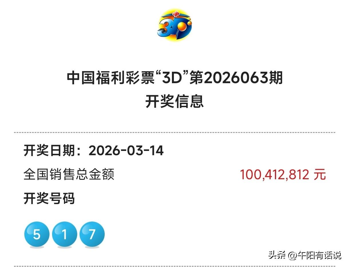 福彩3D26064期号码共享,重点关注奇数号码继续热开 开奖快讯 福彩3D26063期开奖号码为:5 1 7 最近一段时间,开奖号码走势非常反常,号码4处于癫狂状态,连续开出周期达到七期,并且还搭配号码9连续四期开出两码4-9组合,更为反常的是上期三码奖号在组选形态上完全重号。 奇偶号码走势 本期开出了全奇数号码,终于结束了两码4-9组合的狂轰滥炸。最近一段时间,奇数号码处于热开期,奖号开出数量以两码为主,并且以连开形式居多,最长连开周期达到五期。 与此同时,三码奖号在大冷十九期开出后,便进入回补状态,本期再次开出。由于当前奇数号码走势正热,加上本期又以全奇数号码形式开出,预计接下来奇数号码继续热开的概率较大。 组选号码关注 1,2,5,7,8,9 直选号码关注 百位号码:2,1,5,8,9 十位号码:9,4,5,1,7 个位号码:6,3,2,4,8