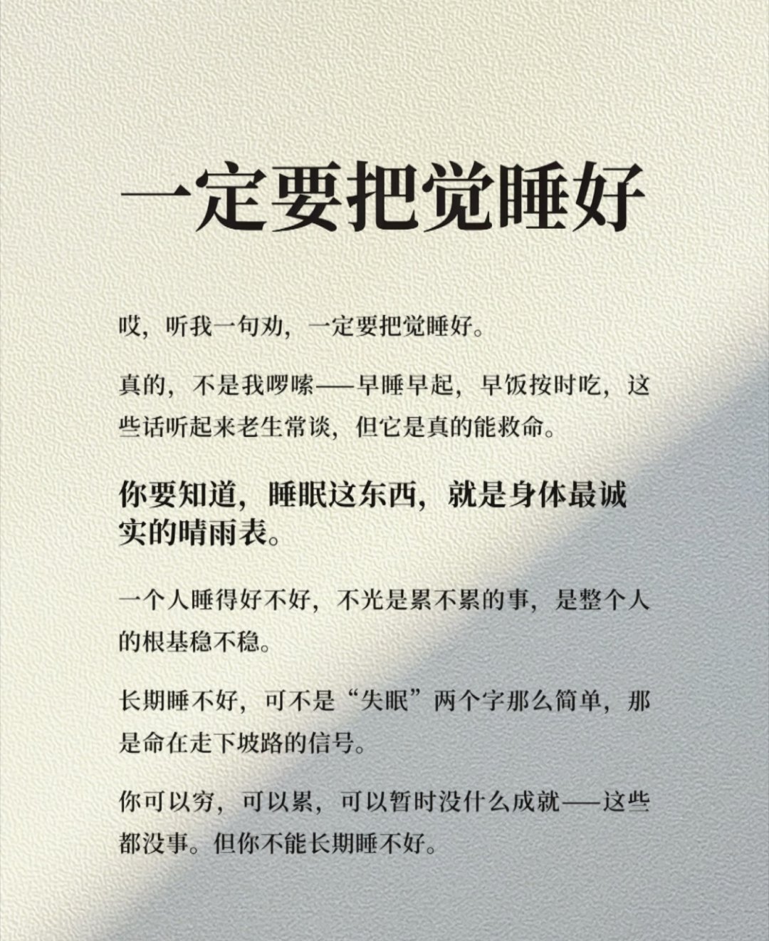 高质量睡眠对人的改变长期睡好的人,变化真的肉眼可见。白天不犯困、脑子清醒、情绪稳定,连脾气都变温和。原来好睡眠不是奢侈,是让生活变舒服、变顺的最简单方式,睡对了,整个人都在往上走。
