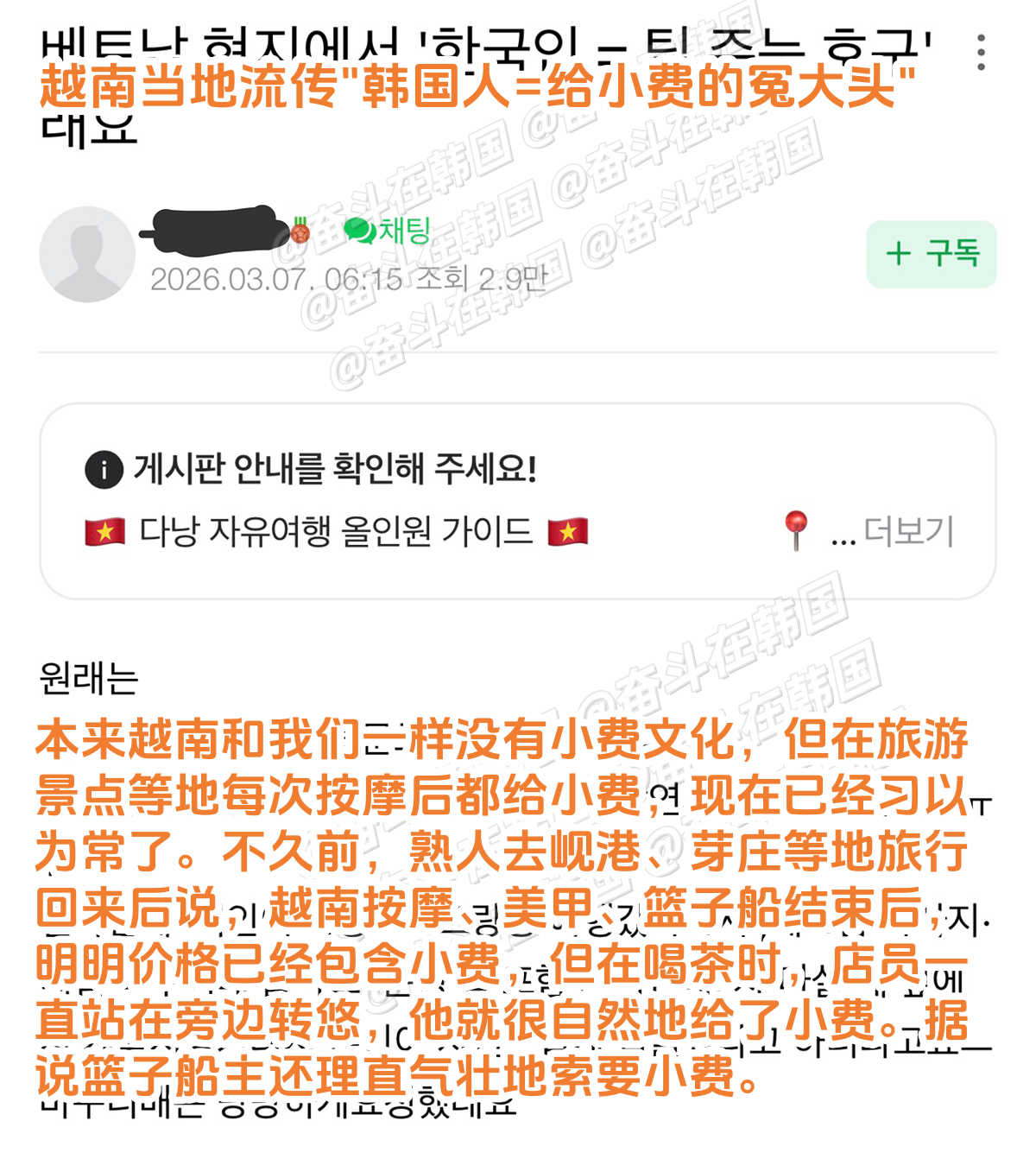 在东南亚的旅行社区里再次提到的韩国人消费文化和小礼物问题 海外新鲜事 热点现场 韩国人=给小费的冤大头