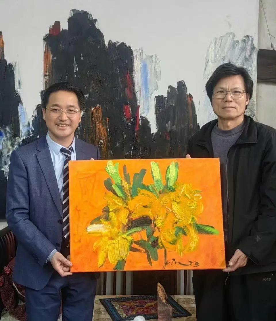 点都德。访中国美术家协会会员、油画家黎伟明,欣赏他的金百合油画系列并一起叹早茶。