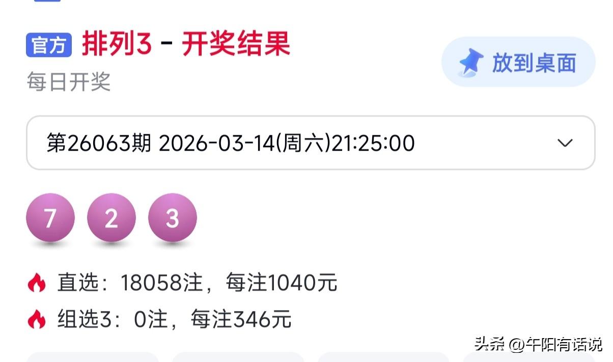 排列三26064期号码共享,重点关注大号反弹 开奖快讯 排列三26063期开奖号码为:7 2 3 奇偶号码走势 在上期奇数号码出现大爆发,开出全奇数号码之后,本期开奖号码奇数号码继续保持热开状态。 虽然奖号开出数量有所下降,不过依然开出了两个奖号。值得注意的是本期所开出的两码奖号3-7,与前期相同。 最近一段时间,奇数号码走势一直处于高热状态,并且出现了阶段性爆发。共分为四个阶段,连开周期依次为四期、五期、五期和四期。 在以两码为主的同时,夹杂着三码热开。由于当前偶数号码走势严重偏冷,预计接下来偶数号码很有可能会出现反弹。 组选号码关注 0,4,5,6,7,9 直选号码关注 百位号码:0,2,5,7,9 十位号码:1,8,5,0,6 个位号码:9,1,2,4,5