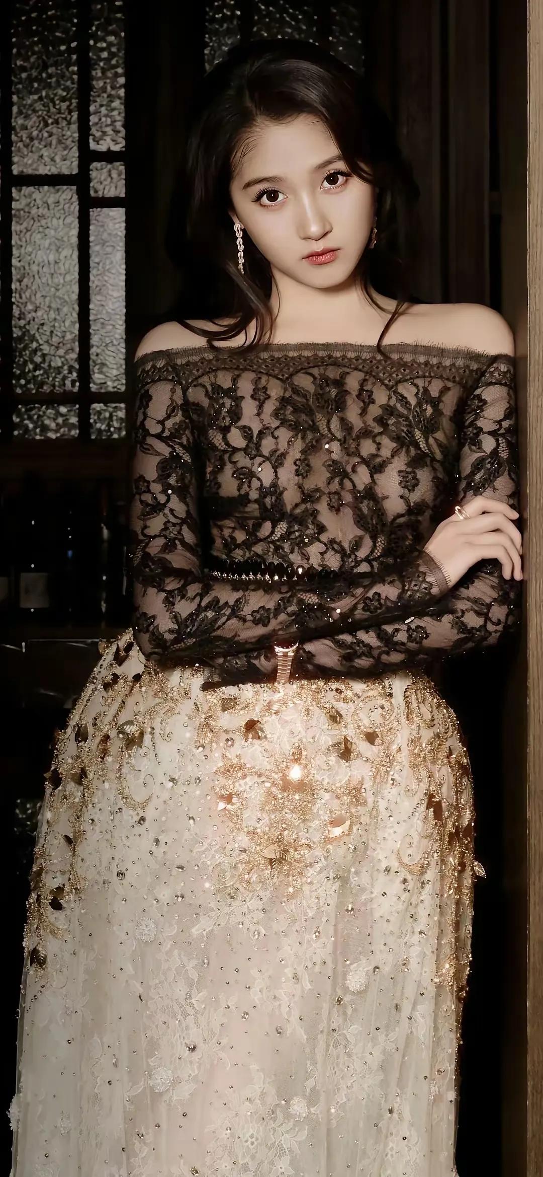 美女壁纸~关晓彤,鎏金织梦,暗夜生香。复古光影勾勒优雅轮廓,蕾丝与亮片交织出矜贵
