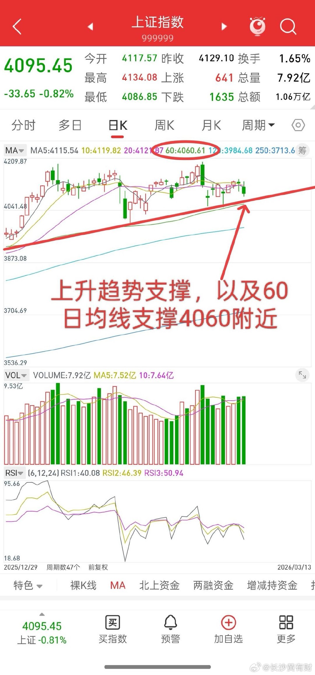 其实目前大盘的走势还是很清晰的,五月均线支撑是4046,差不多4050附近,这几个月以来,行情一直是沿着五月均线往上运行,这就是标准的上升趋势。即使2.3号,3.4号,3.9号这几天砸出来的低点,也都是打到五月均线支撑,就开启反弹了。