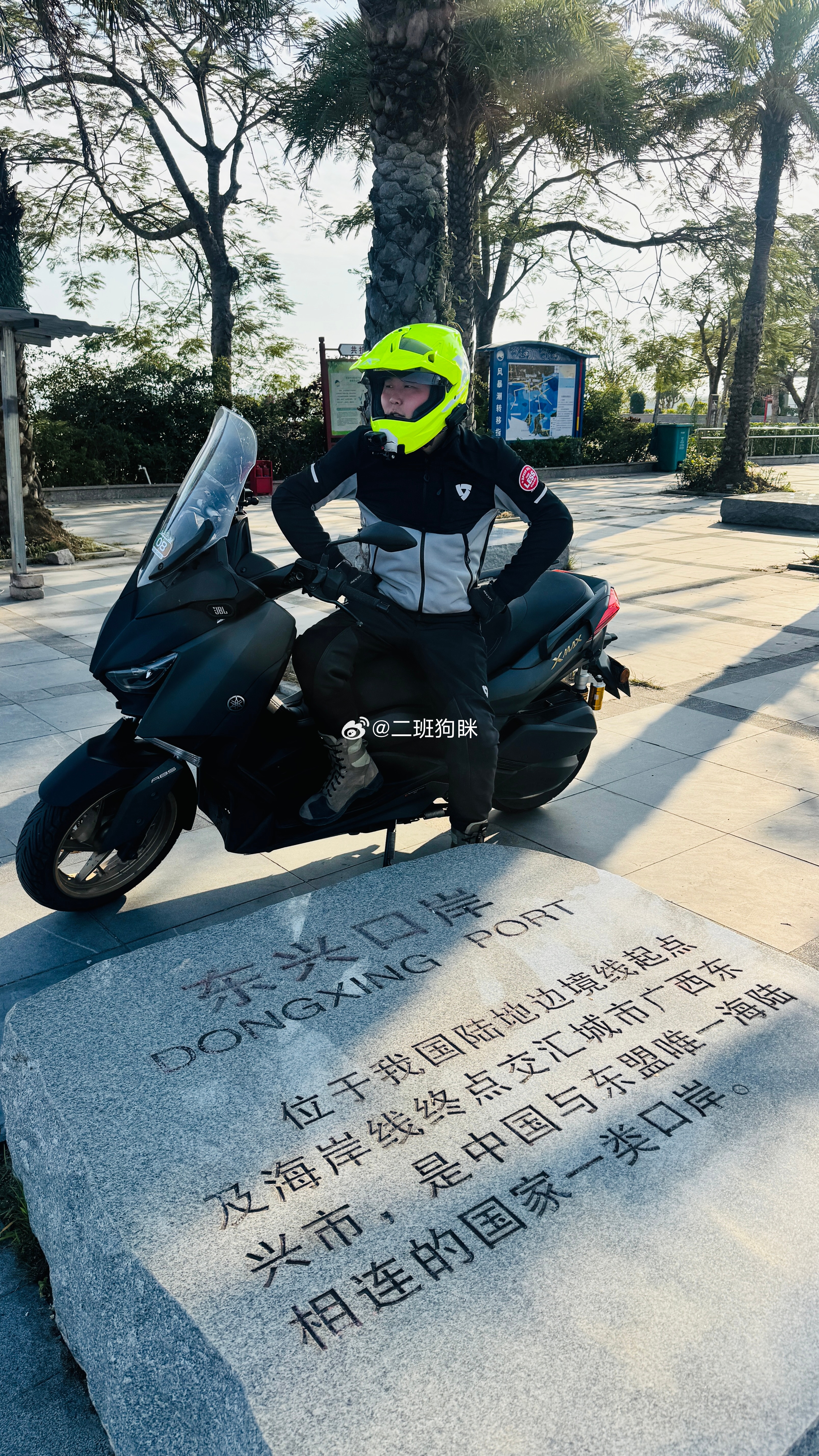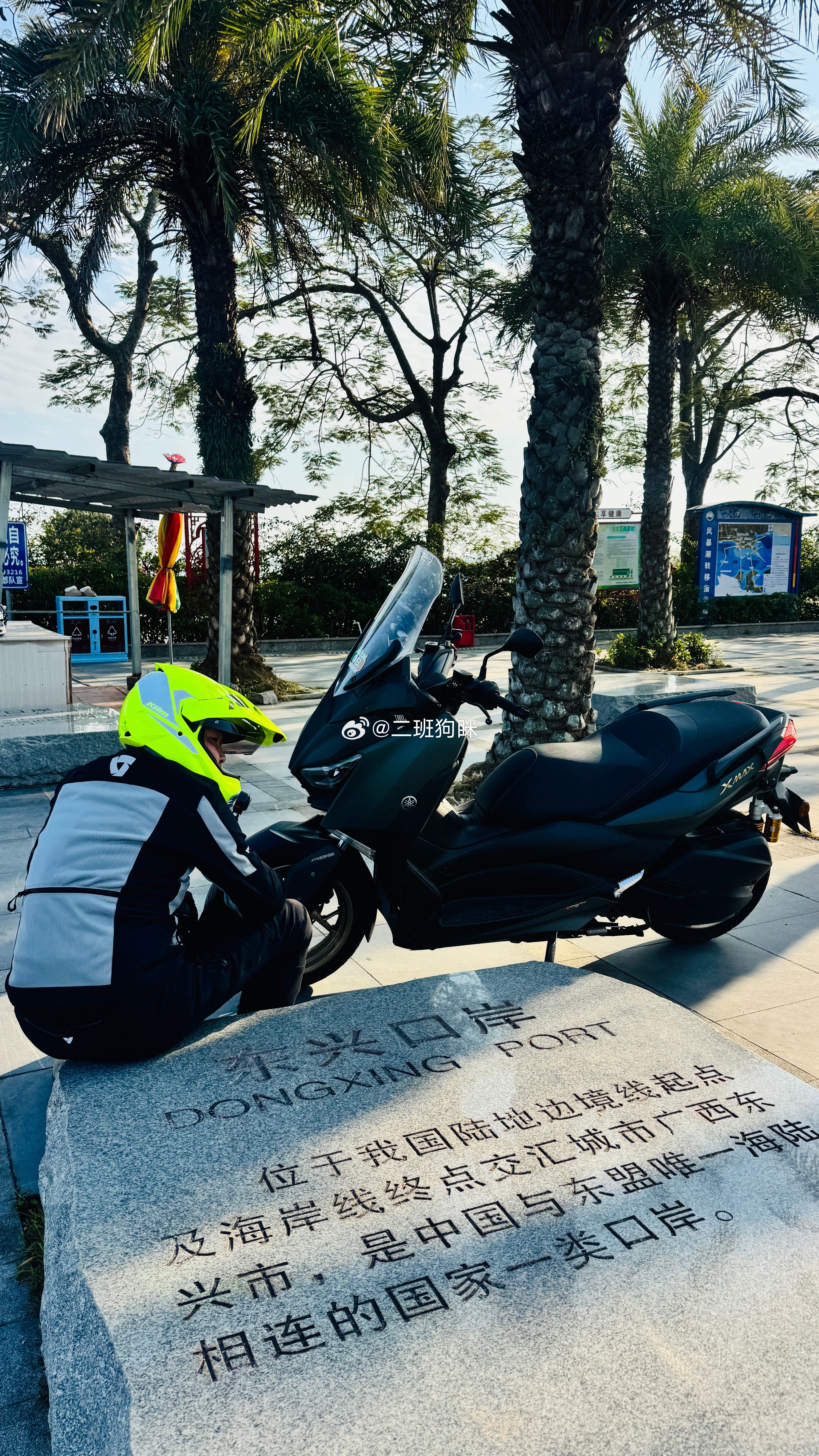 整理年初骑XMAX去广西摩旅的照片突然看到自己怎么有个白色的“屁眼儿”,仔细一看原来是地壳内层裤子上有个白色logo,怎么眼也开始花了我和汽车的日常狗眯的壮游之旅摩托车 东兴·大清国一号界碑