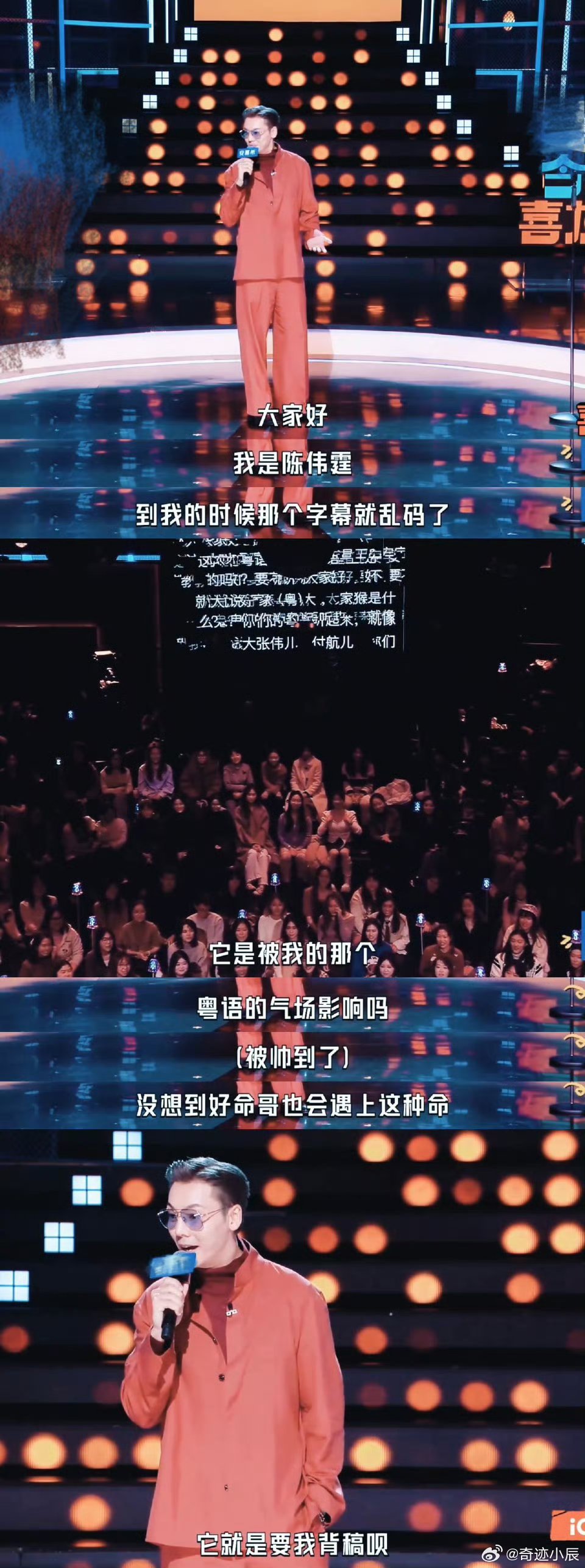 提词器罢工陈伟霆真脱口秀了 提词器罢工怕什么?陈伟霆直接开秀!全程淡定脱稿脱口秀,梗密度拉满,突发变高光,这临场反应绝了,好命哥太稳了!