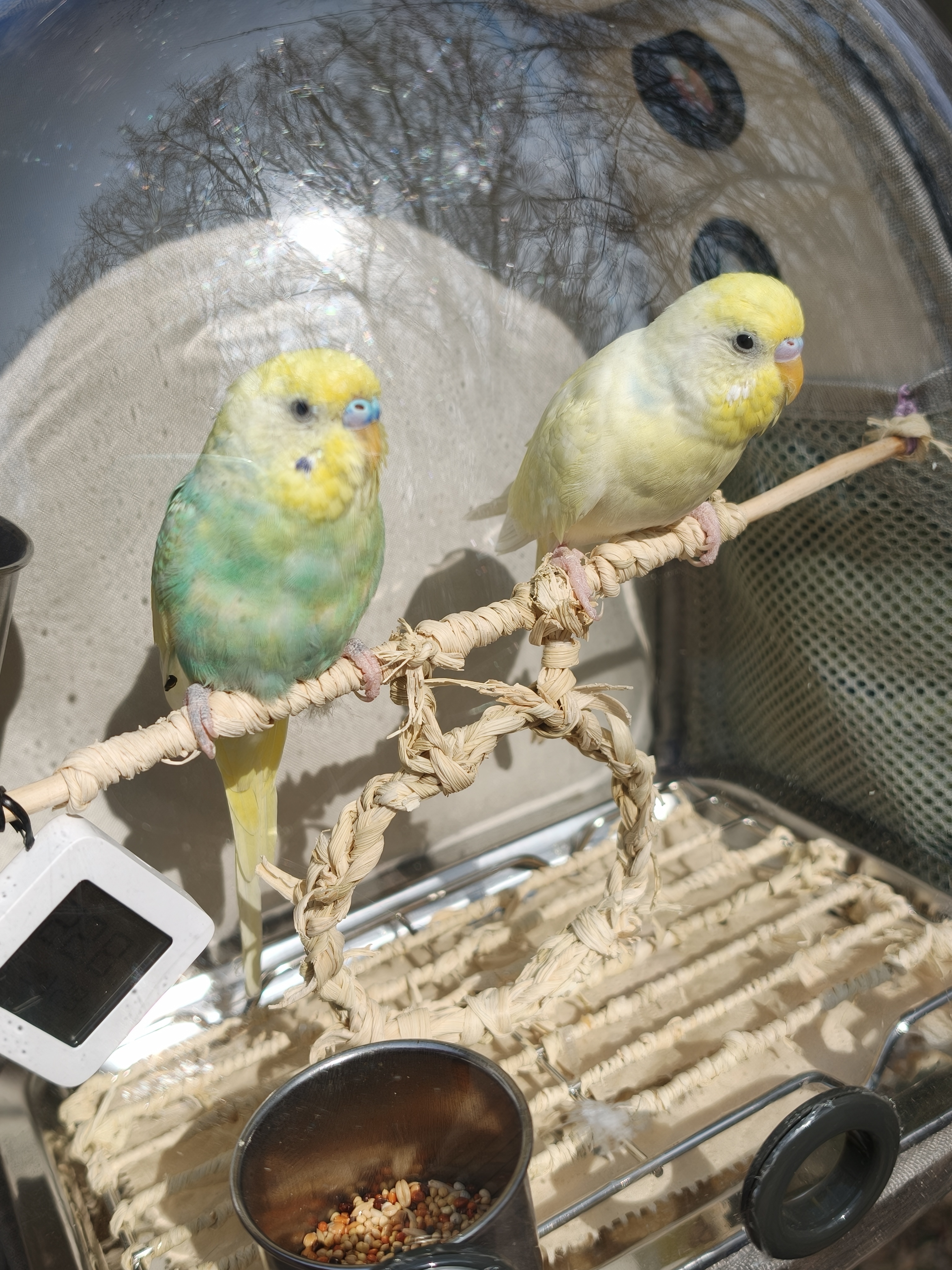 虽然外面还是光秃秃一片,不过气温还算凑合,带鹦鹉小蓝和布丁 出来转转。小蓝这两天状态不太好,得补充维生素了