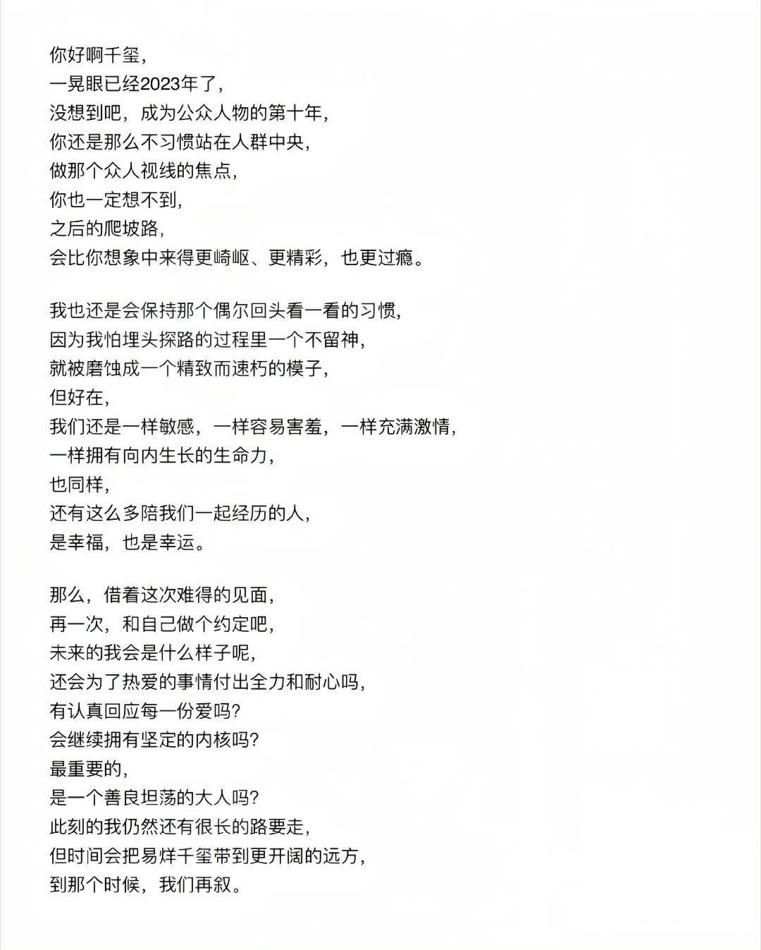 又看到p1这封17岁的小千写给自己的信天啊原来27岁就在明年,好快的十年🥺🥺🥺还不到十年你就做完了17岁设想的各种事情无论几岁小千都要深信不疑,爱你的人一直都特别能感受到你带给我们的幸福☺️