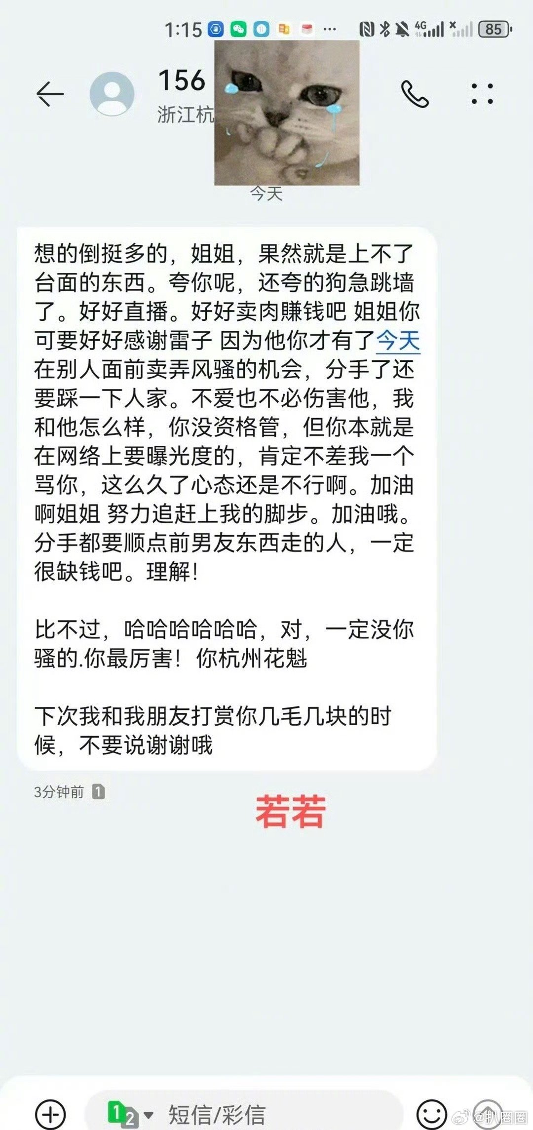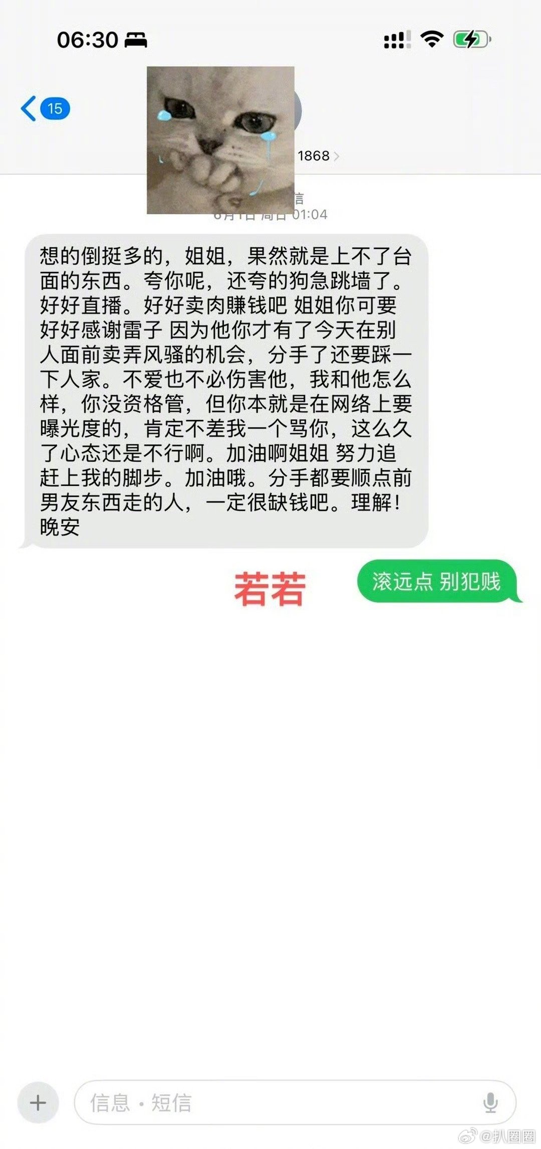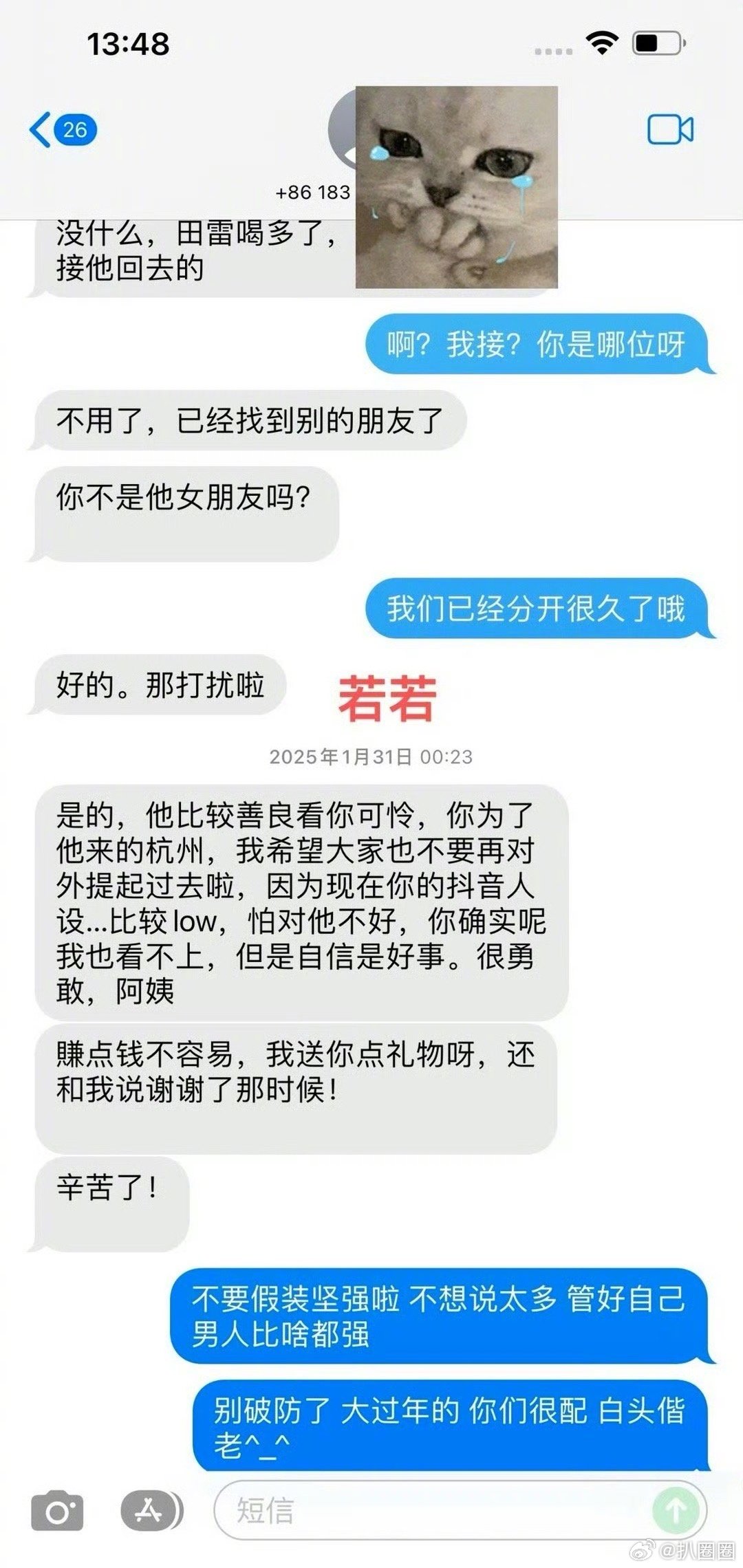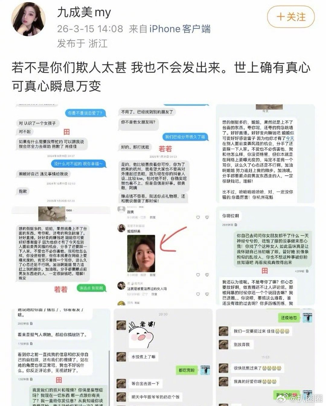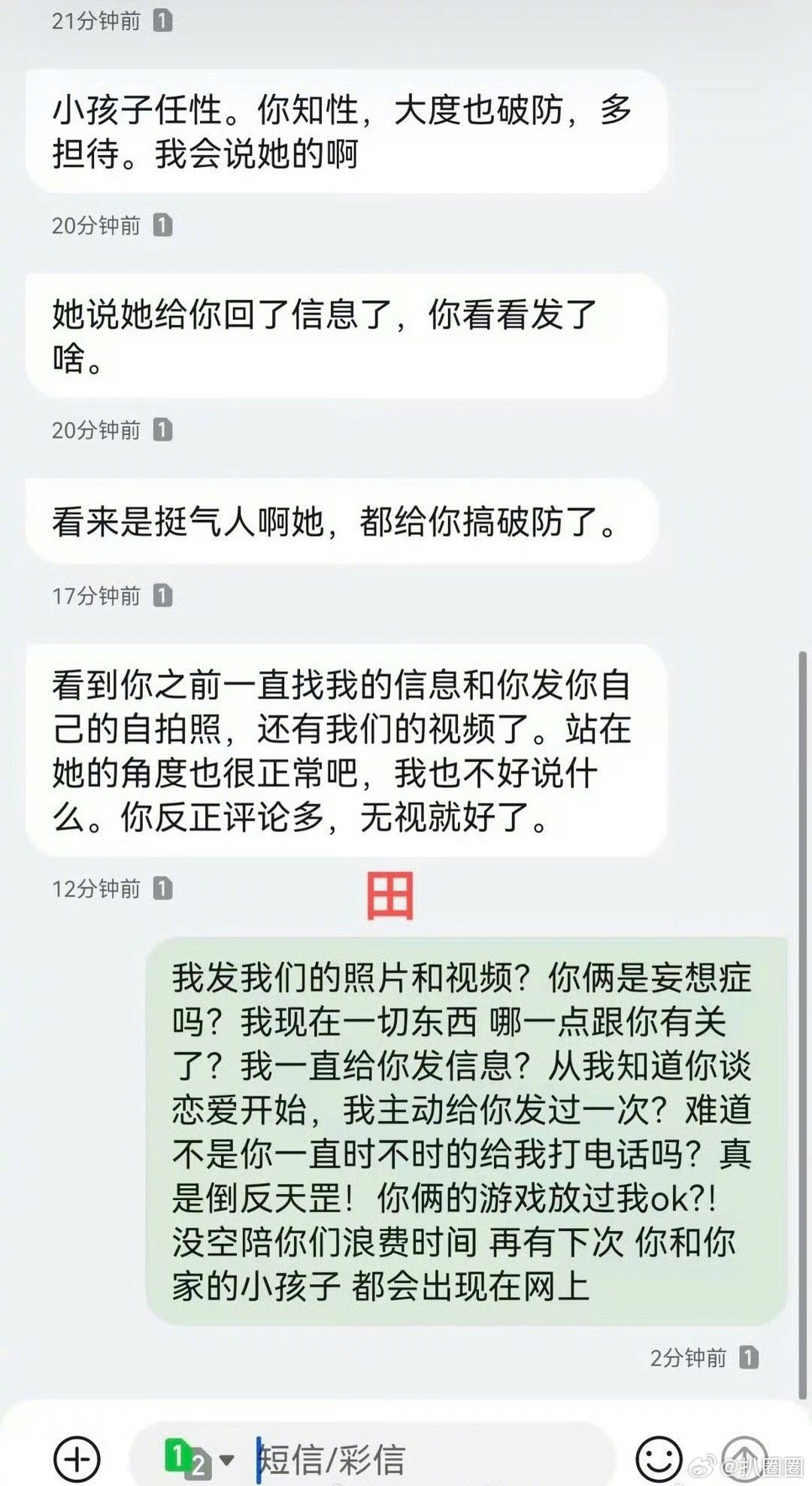 九成美若若聊天记录 九成美发了和田栩宁、若若的聊天记录,若若发短信骂九成美,而田