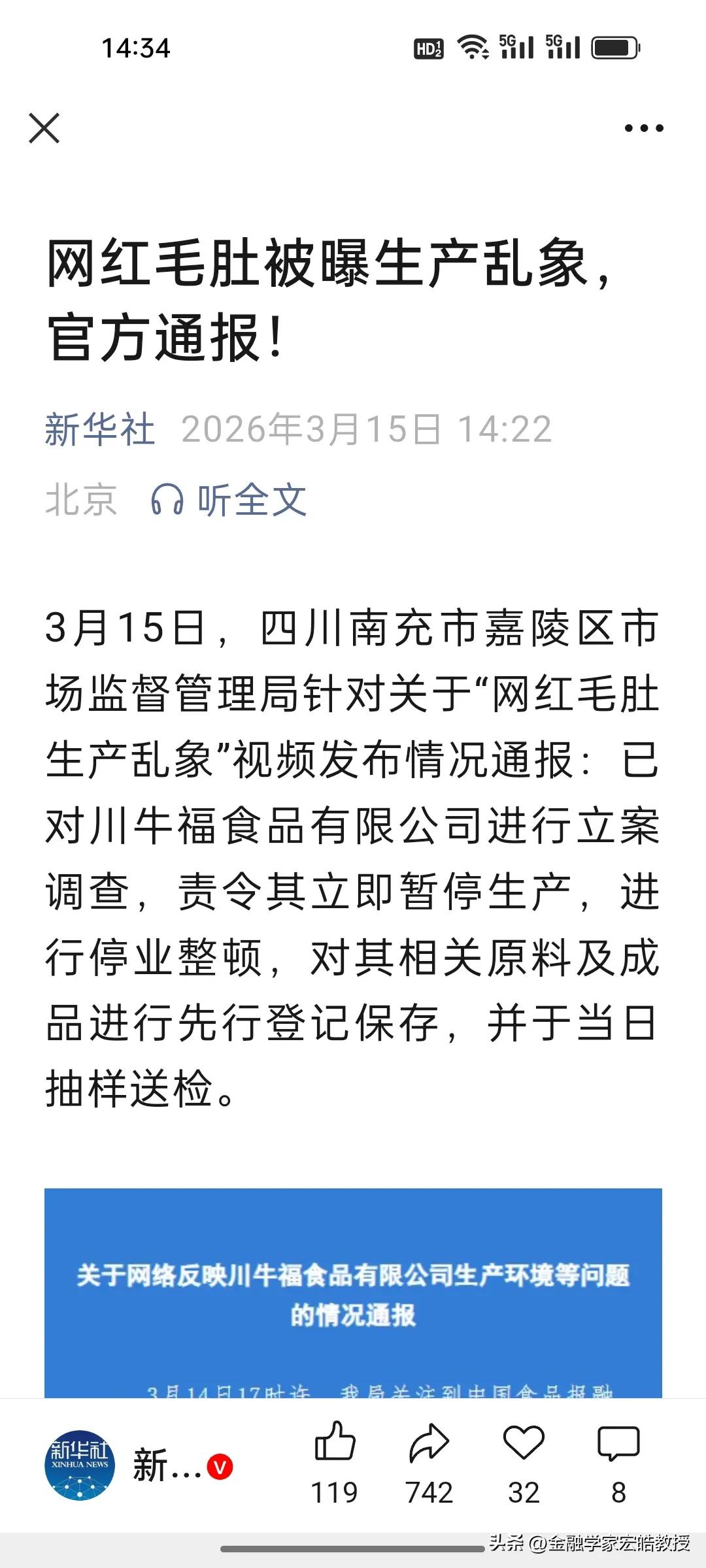 看下图,太解气!315撕开遮羞布,这些造假套路藏不住了!今晚的315晚会又有多少商家在瑟瑟发抖? 每年315都是一线媒体打假的“高光时刻”,兢兢业业的记者们化身福尔摩斯,深挖黑产、蹲守暗访,硬是把那些用鸭肉充牛肉、胶水拼虫草、假牛奶横行农村的猫腻,全扒了个底朝天! 看着网红店用鸭肉充牛肉还理直气壮,进口“增肌神药”藏美国兽药,连潮汕牛肉丸、网红毛肚都难逃造假,真的又气又心寒。老百姓盼的哪是只在315打假,是天天都能买到放心货! 监管真得加把劲,把大数据AI监测铺到菜市场、餐饮店,食品加工厂等每一个角落,打通全链条数据,让造假商家无处遁形。要让违规成本远高于收益。要让315的较真劲儿,变成365天的日常守护,老百姓才能吃得踏实、活得安心!