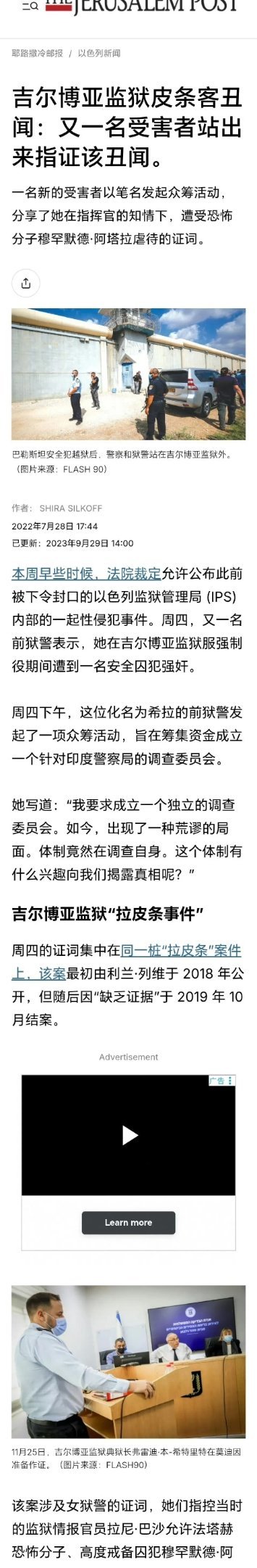 以色列国防军多名女兵被男上司送给巴勒斯坦男囚强奸性虐。