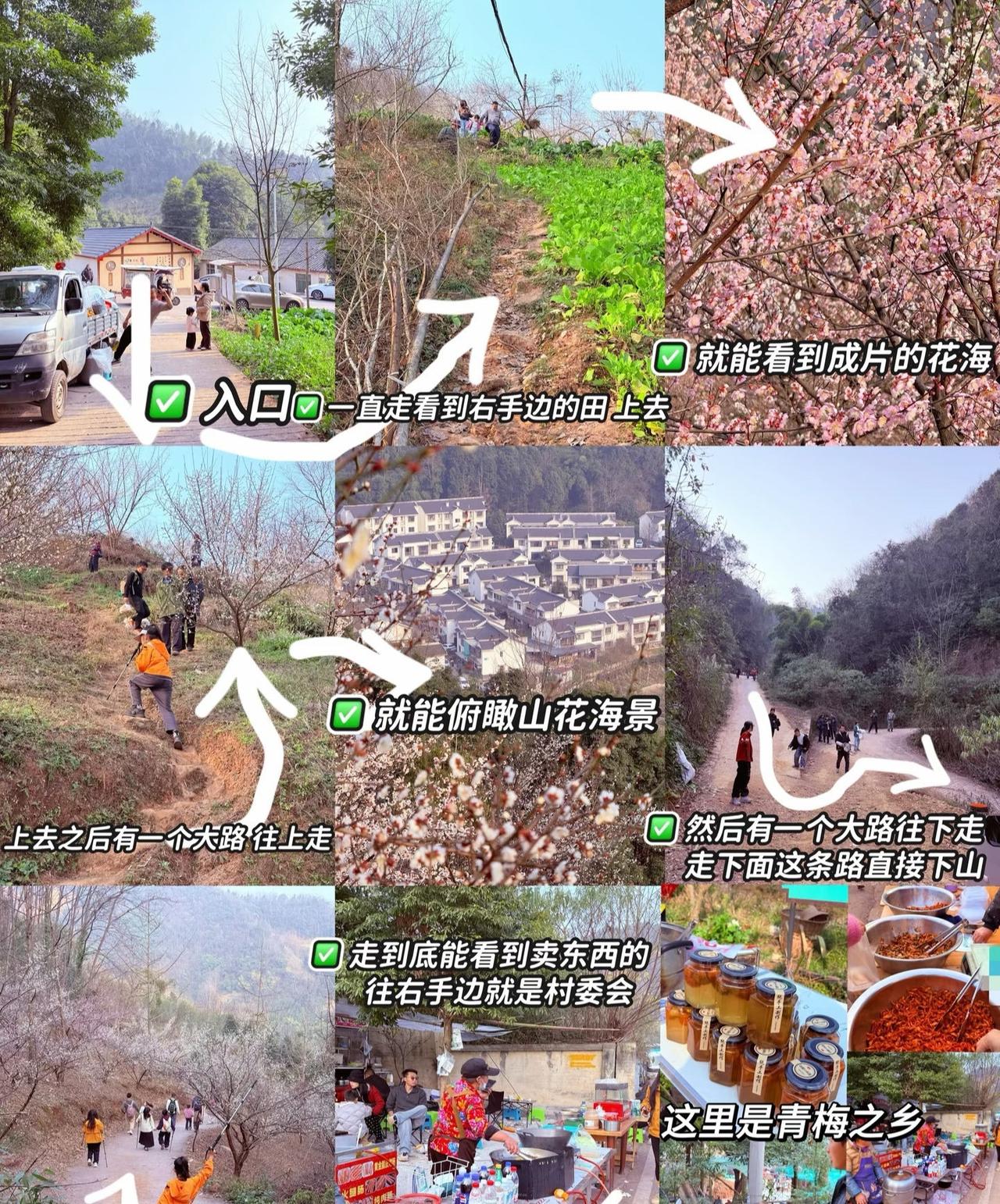 大邑雁鹅村📍满山梅花超出片 📍成都 成都周边|1.3h直达梅花海!人少免费还能打野挖葱🌼 宝子们!!2026年第一波梅花已经开疯了!! 空气里飘着淡淡梅香,一路走一路拍,还能捡酸枣、挖野葱… 免费赏花+轻徒步+遛娃拍照+隐藏打野玩法,Buff叠满,攻略直接抄👇 🌸 ▫️位置:大邑·雁鹅村(导航“雁鹅村村委会”) ▫️交通:成都自驾1.5h直达,高速免费 ▫️停车:村委会内免费(车位少)/农家坝子10元 ▫️门票:0元!0元!真的免费! ▫️花期:目前盛开90%+,持续到一月下旬没问题 懒人徒步拍照路线: 强推第一个路线 对膝盖真的很友好‼️ 1⃣️ 懒人赏花版(适合带娃/长辈/只想拍照 简单徒步) ✅ 停车后沿水泥路走(图16的房子对面)上山到花海第一波打卡地(20分钟) ✅ 只有上山斜坡路段有点累,其余都很不错。沿路梅花已经很密 2⃣️ 轻徒步沉浸版 ✅ 逆时针小环线约4km,一路被梅花包围 ✅ 人少花密,移步换景,沉浸式吸氧洗眼 ✅ 最终也能抵达山顶梅花密集区 推荐看看两步路的足迹👣 🌿 【隐藏玩法:打野的快乐!】 ▪️野葱已上线!记得带小铲子,挖一袋回家炒蛋香晕… ▪️野生酸枣考眼力 🎒 【行前准备】 ✓ 自带水零食 ✓ 穿防滑运动鞋,可带登山杖(一定!) ✓ 垃圾袋(无痕出游哦~) ✓ 野餐垫可带,梅花树下坐坐太惬意 ✓ 厕所只有山下有,私人收费1元/次 🥘 【赏花后去哪吃】 回程可顺路去 新场古镇 图1️⃣8️⃣ 车程20分钟,肥肠血旺、麻油鸭、豆浆馍馍… 💌 已定位,收藏好就出发~ 成都周边游 成都赏梅 春季赏花好去处 成都徒步 成都周末去哪儿 梅花 成都小众拍照地 亲子徒步大邑