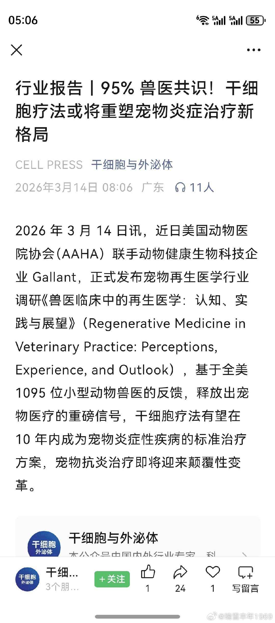 细胞治疗,宠物经济。老鸭昨天看到了,真要笑出声来!这世道,连小猫小狗也要干细胞了?个人所知,A股概念股只此一家别无分号。去年11月收购相关资产,纳入上市公司。相信产业资本,一定是先知先觉的。个人观点,不作任何荐股!