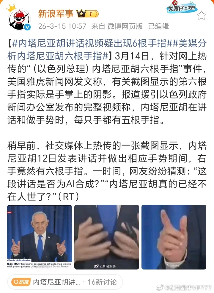 【内塔尼亚胡讲话视频疑出现6根手指美媒分析内塔尼亚胡六根手指】3月14日,针对网