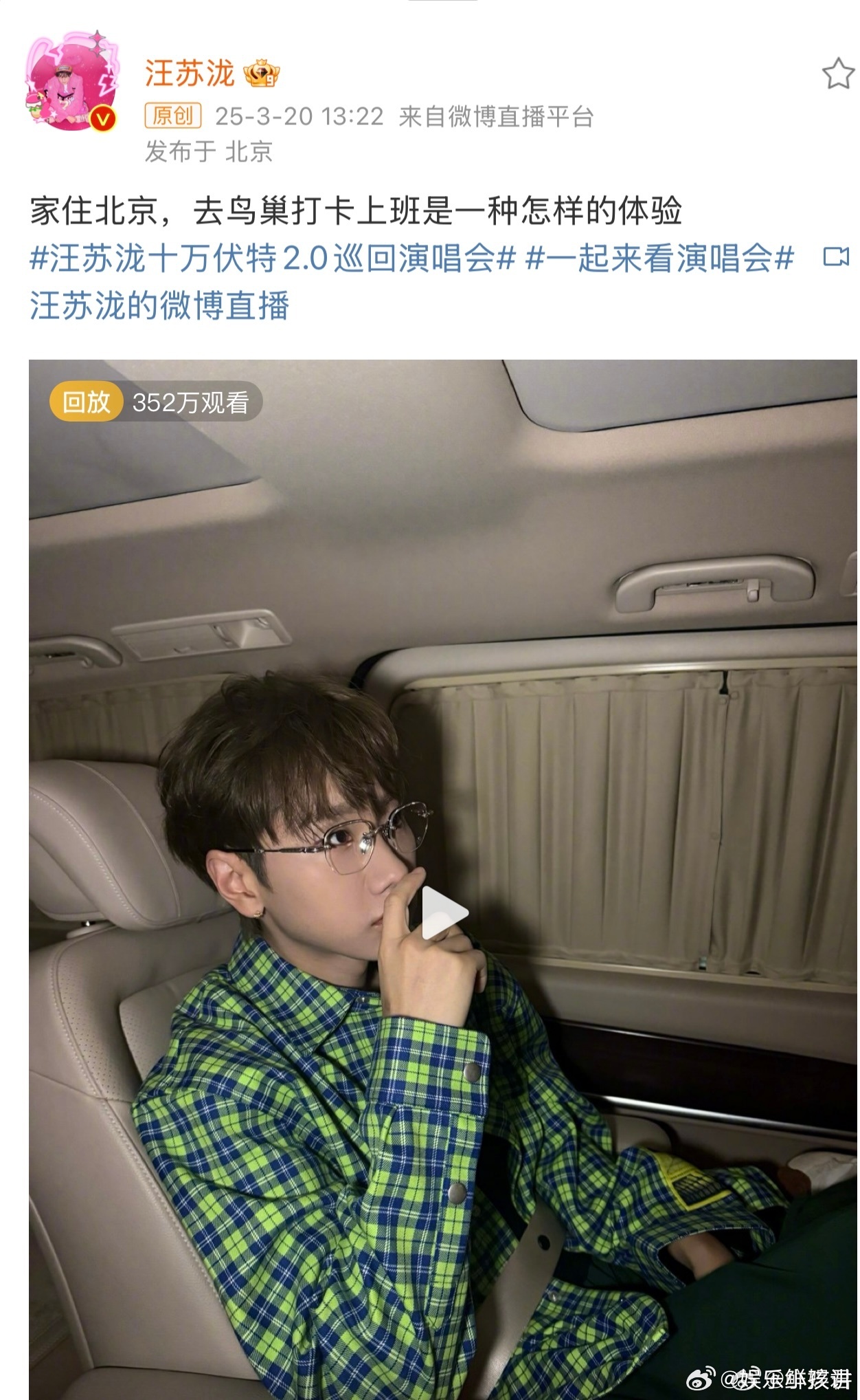 汪苏泷直播 直播中汪苏泷大方剧透巡演安排,分享新歌筹备进度,与粉丝轻松唠嗑,真实