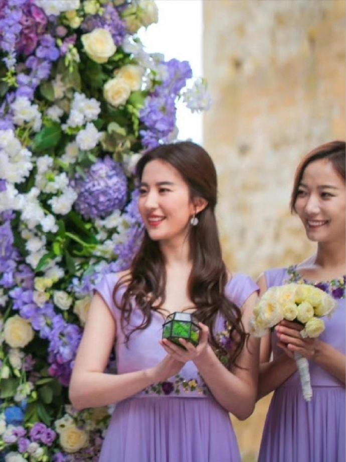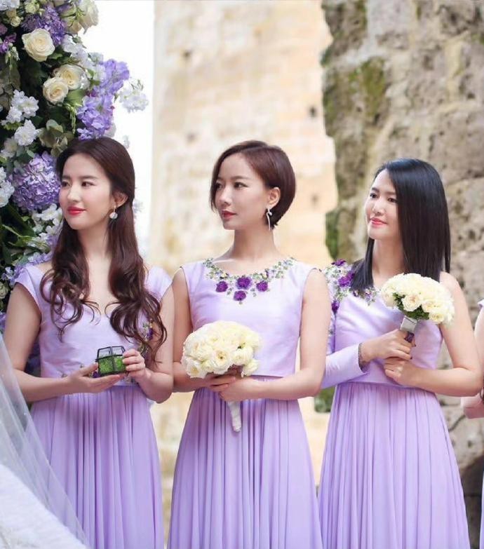 刘亦菲第一次当伴娘 ,紫色伴娘服太治愈了