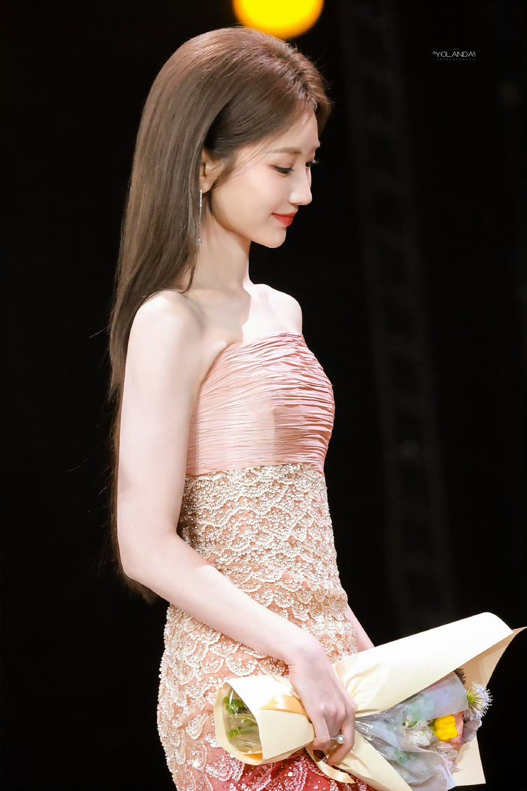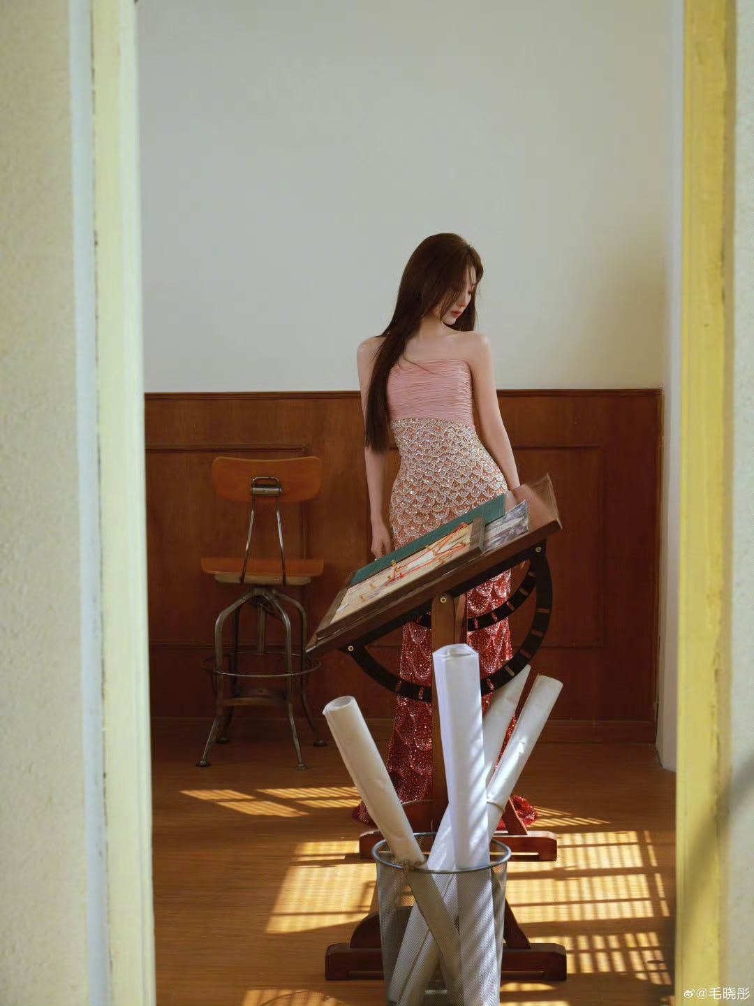 毛晓彤渐变鱼尾裙 毛晓彤的渐变鱼尾裙藏着太多巧思,渐变的色调不张扬却足够吸睛,鱼尾的剪裁贴合身形又不会显得拘谨,裙摆上的细碎闪片在光线下若隐若现,像撒了把星光。她微笑时,裙身的温柔与她的灵动相互映衬,让人挪不开眼。