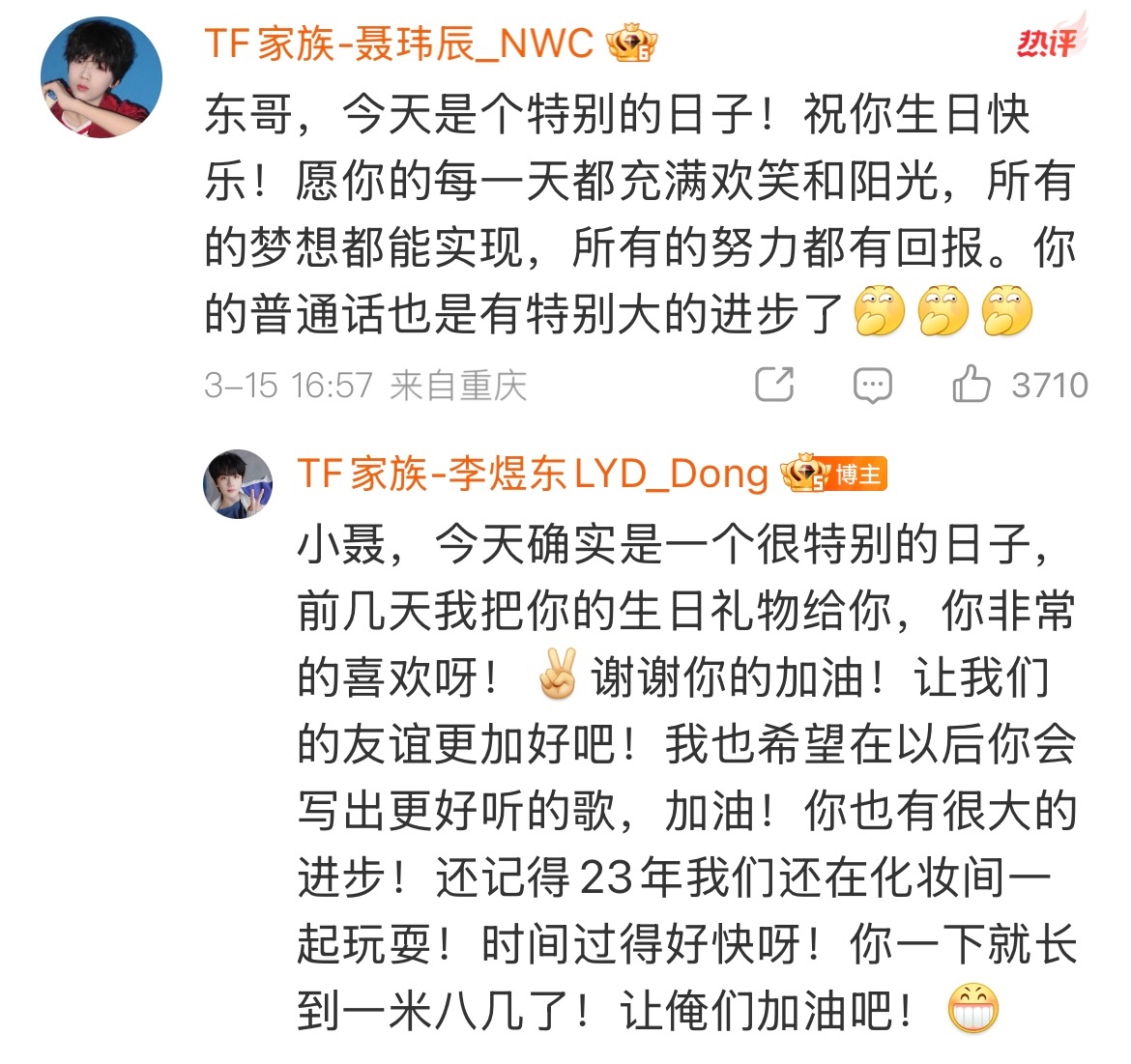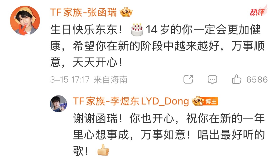 四代给李煜东的生日祝福 李煜东生日🥳四代给李煜东的生日祝福!李煜东回复tf四代生日祝福