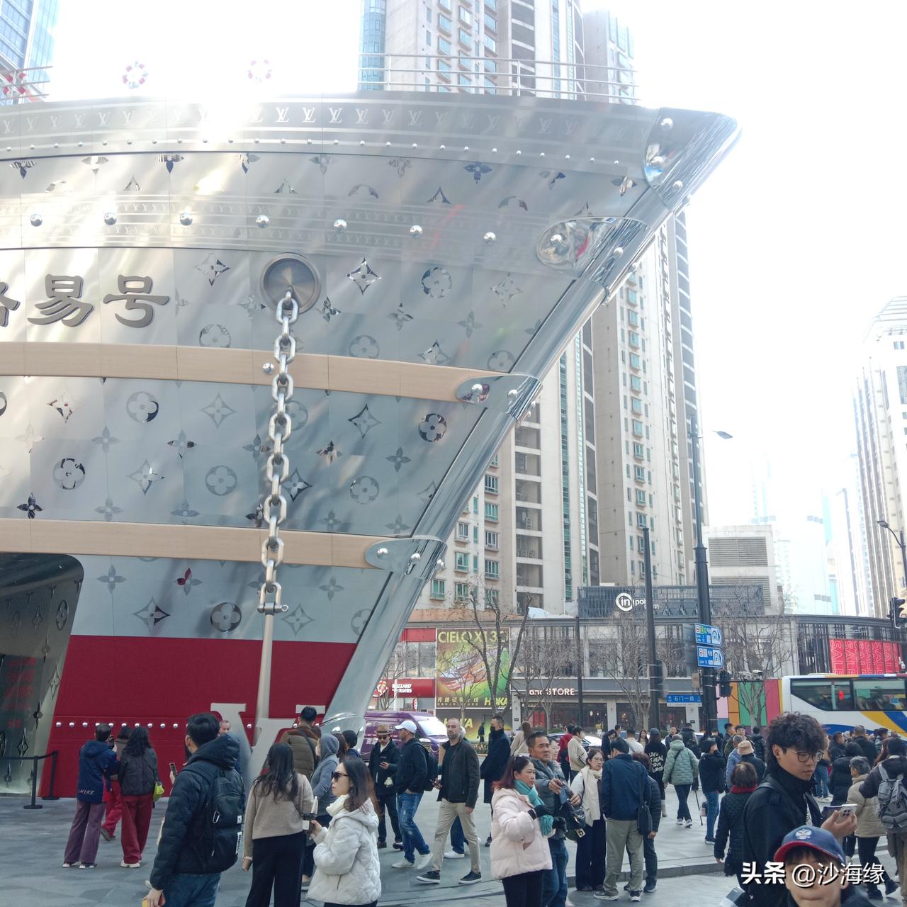 从上海地铁13号线出站,来到南京西路,突然被眼前的一艘大巨轮给惊艳到了,距离上一次经过这里整整有3年了,没想到我不出国居然也能看到世界上最大的帆船,路易威登就在眼前,于是我决定进去好好参观一下,一探究竟,里面都有什么?世界之最!周围聚集了很多人,都在拍照打卡