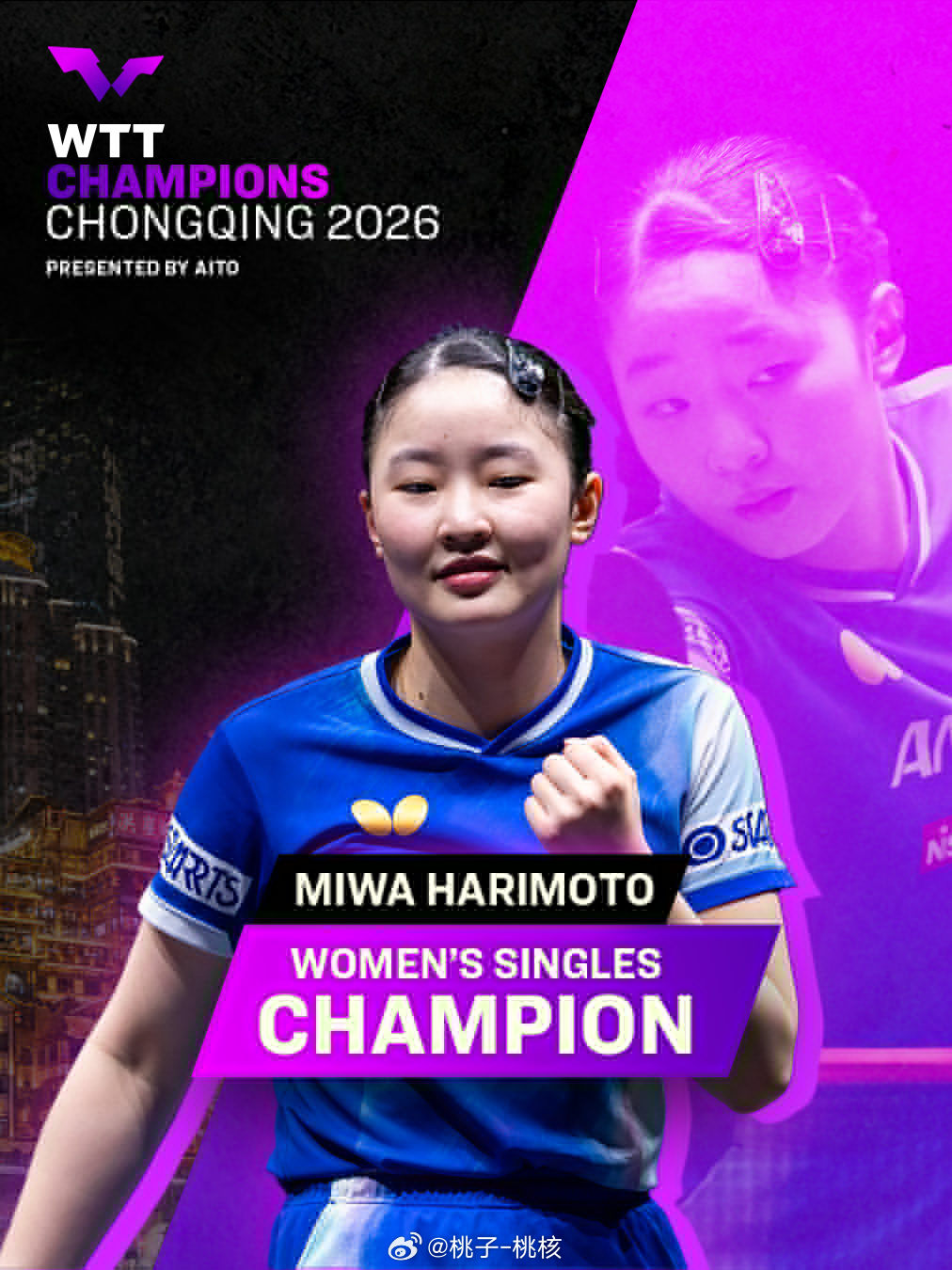 WTT重庆冠军赛2026 张本美和战胜蒯曼夺得重庆冠军赛女单冠军,张本美和成为迄今为止WTT冠军赛中最年轻的女单冠军得主。张本美和冠军蒯曼3比4张本美和