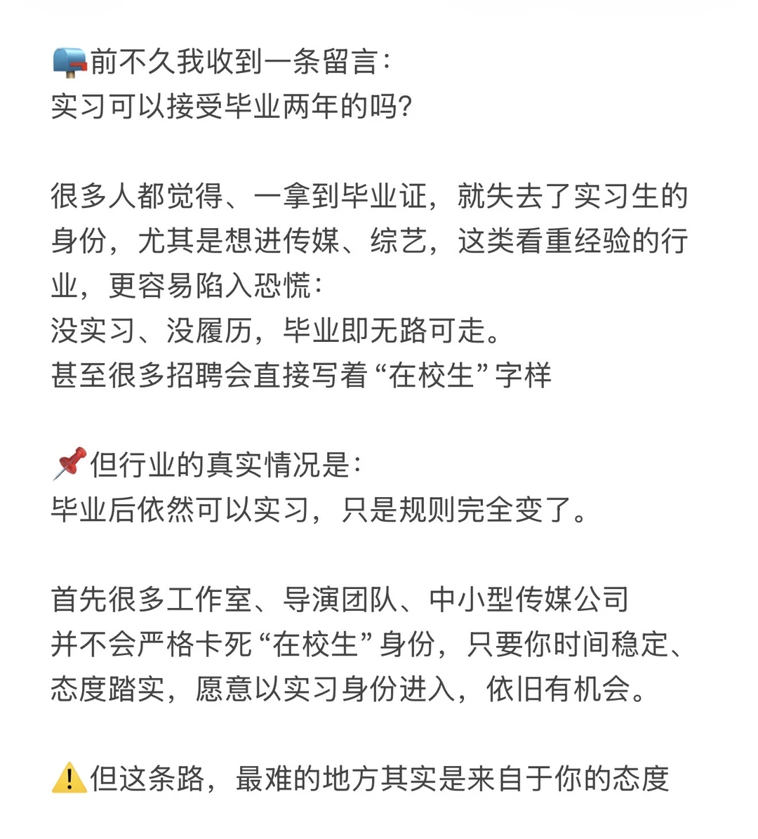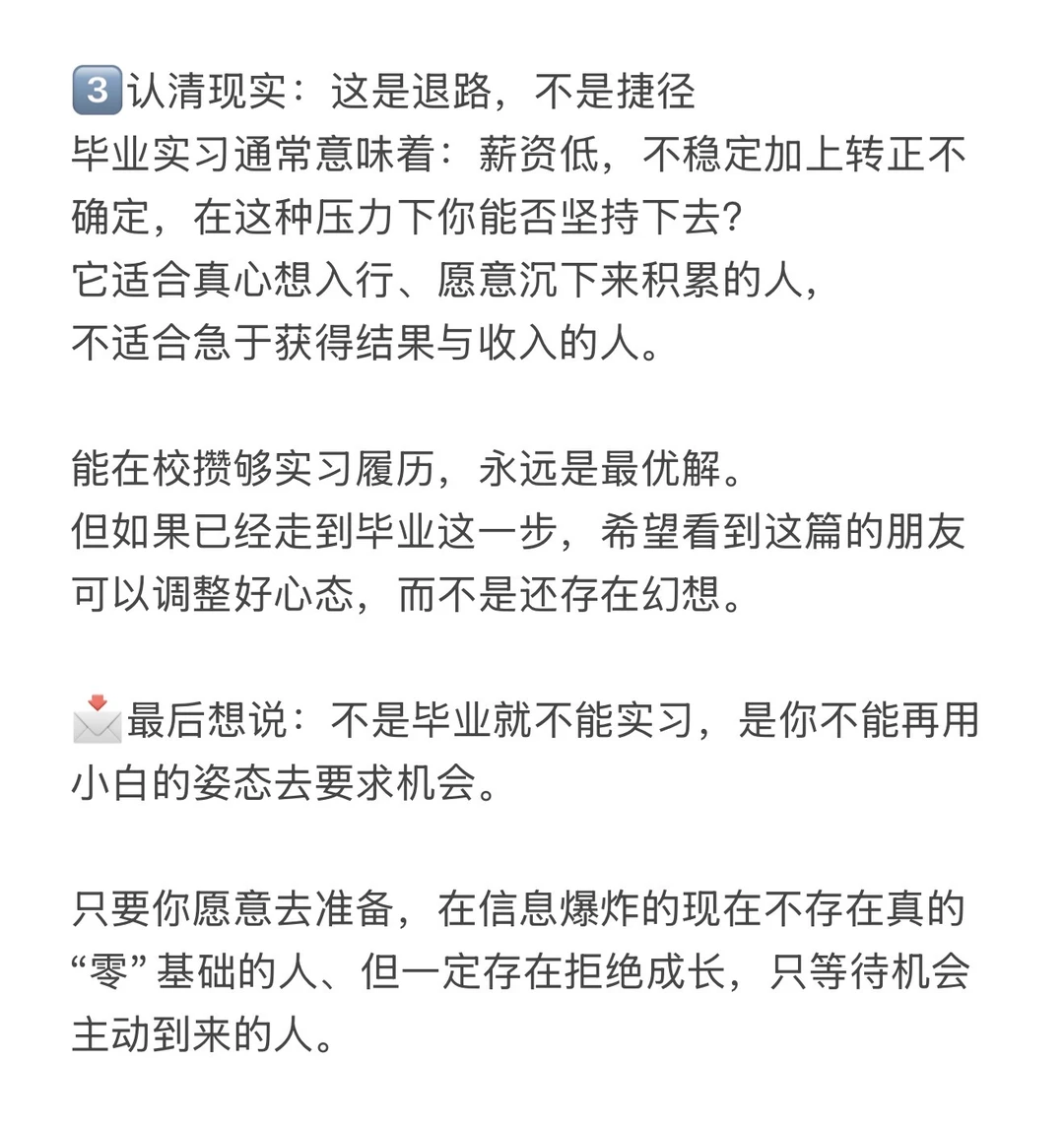 📩最后想说:不是毕业就不能实习,是你不能再用小白的姿态去要求机会。