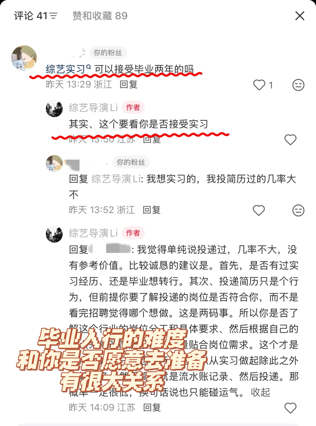 尤其是想进传媒、综艺,这类看重经验的行业