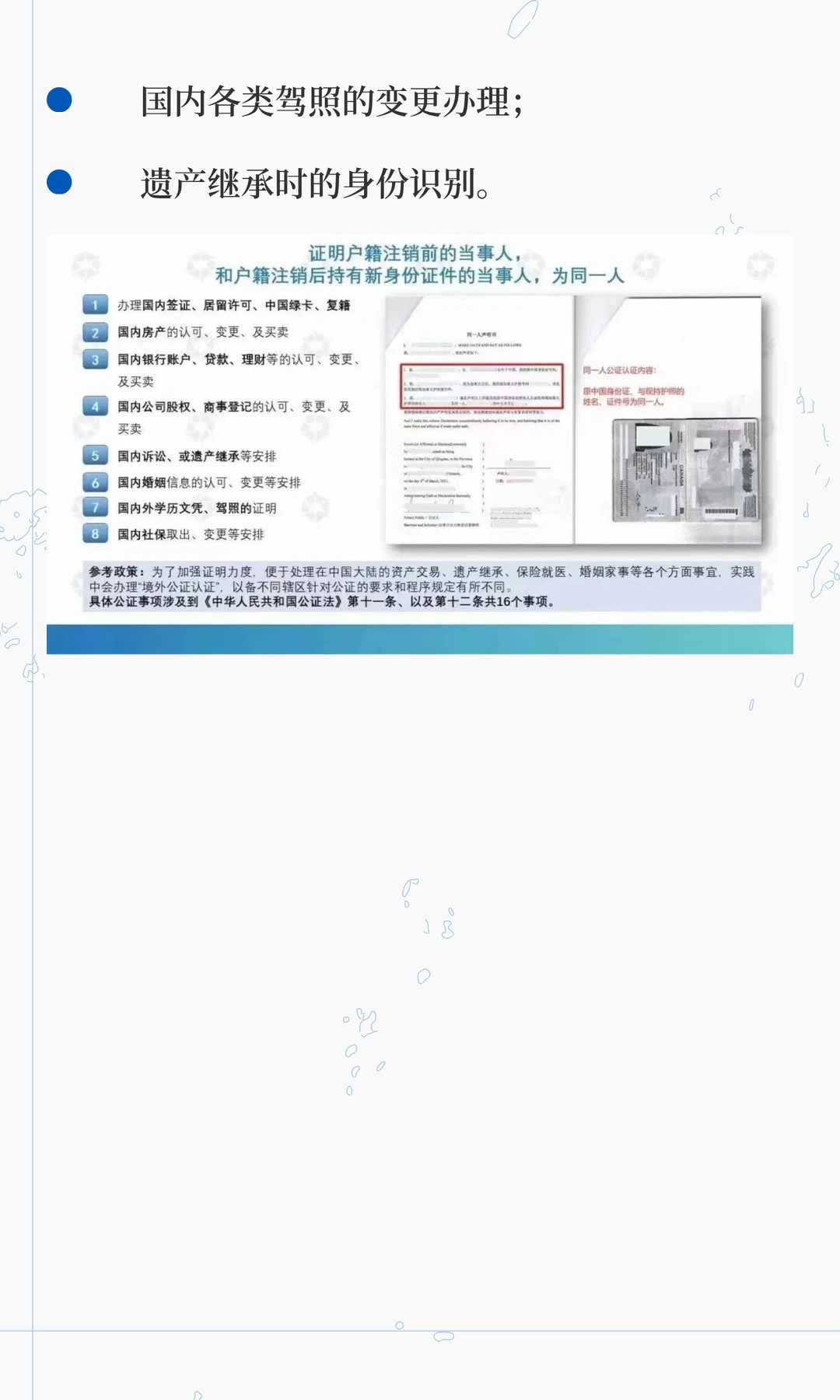 说个关键:入外籍后想处理国内房产、股票、继承财产,要办“同一人证明”,证明中国护照和外籍护照是同一个人,还要海牙认证才有用哦~