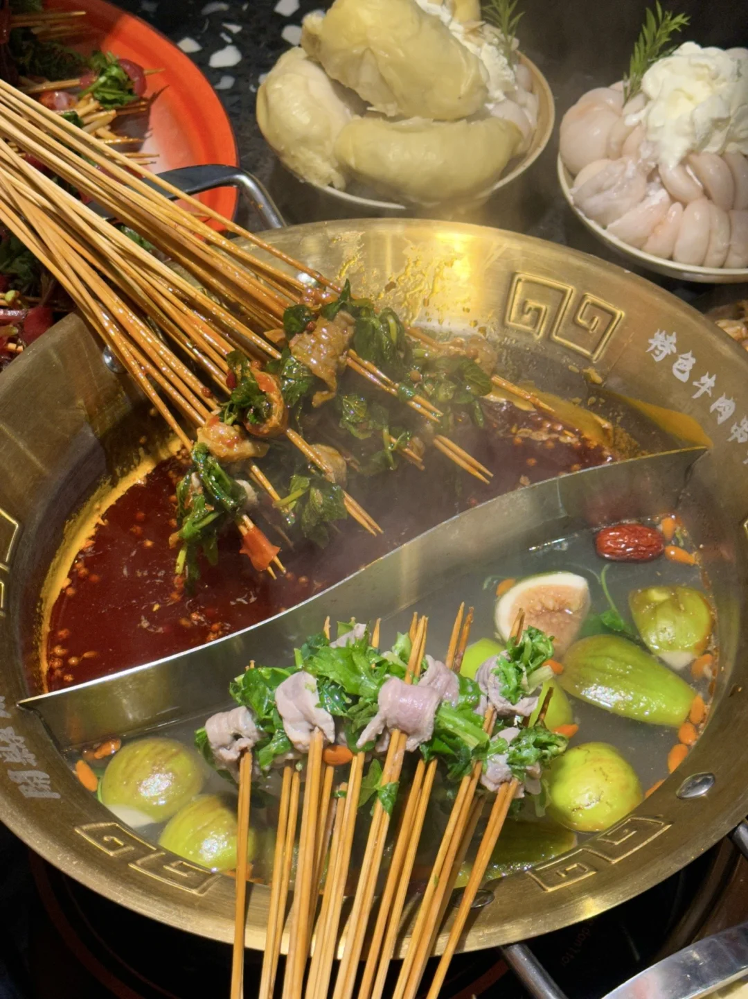 每次来上海都会吃的串串! 薯片牛蛙,外脆里嫩! 又可以吃山竹冰了!榴莲果肉新鲜
