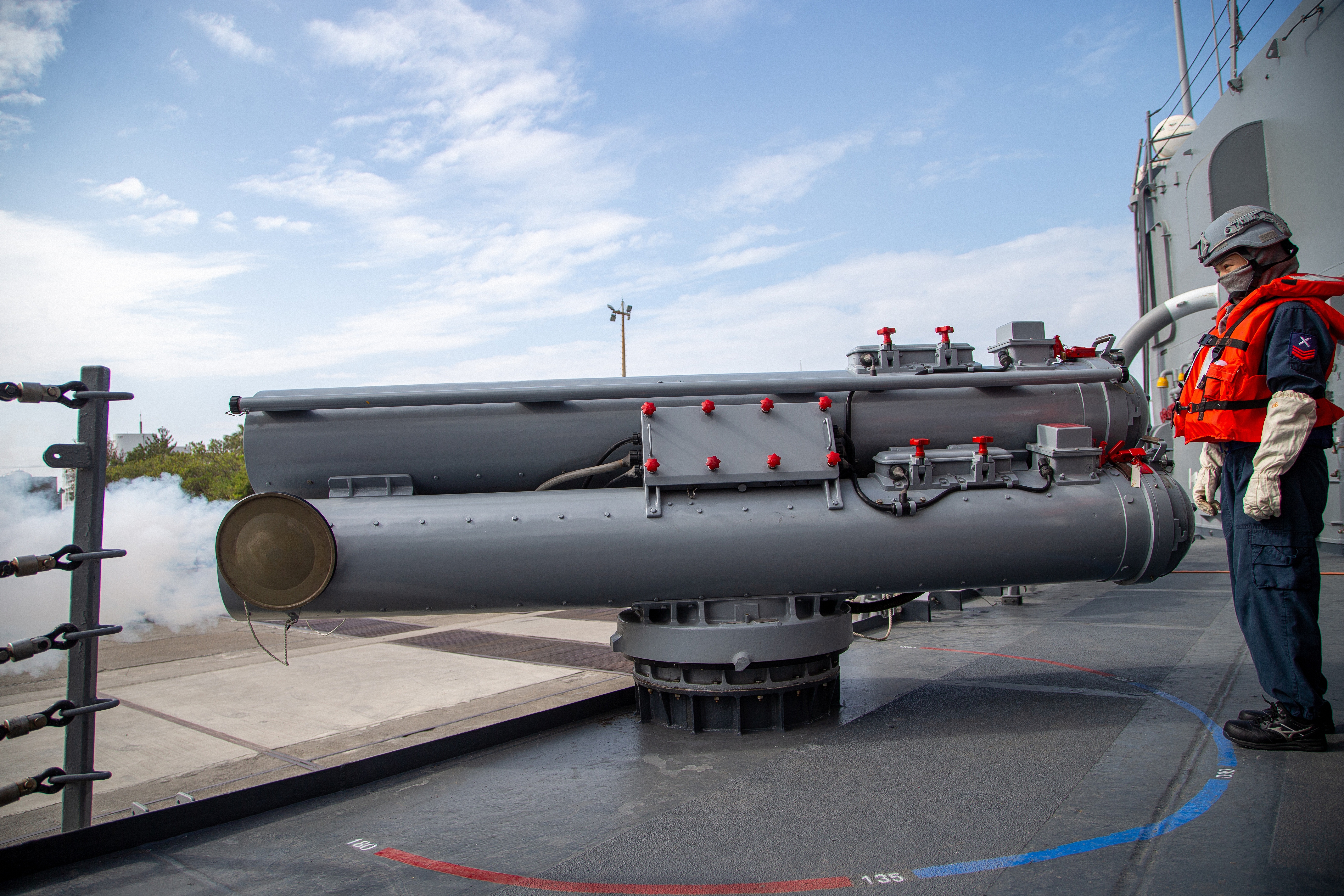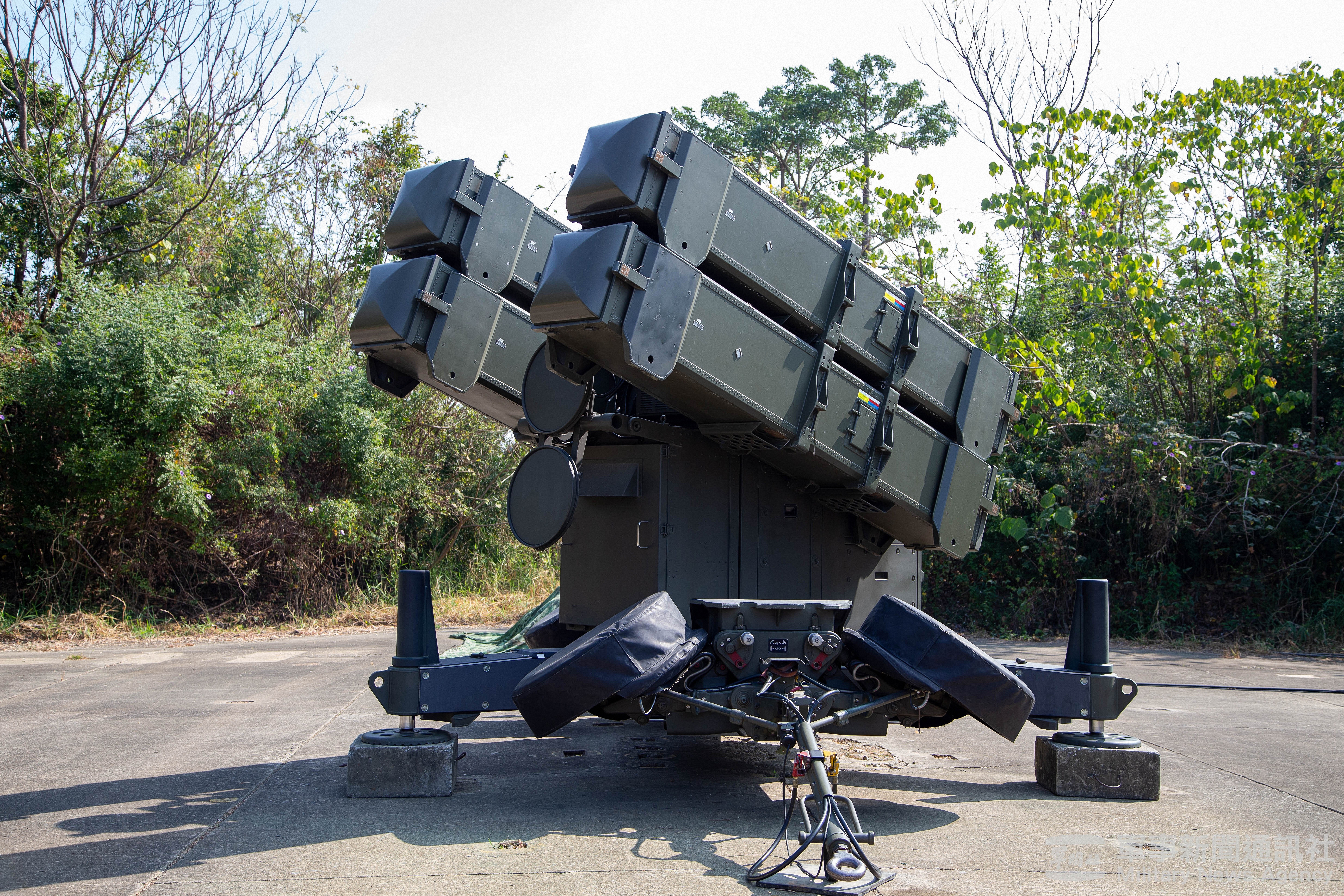 高分辨率图像 近日的台军装备照片,包括单臂发射架上的鱼叉,76炮,海马斯,天兵防